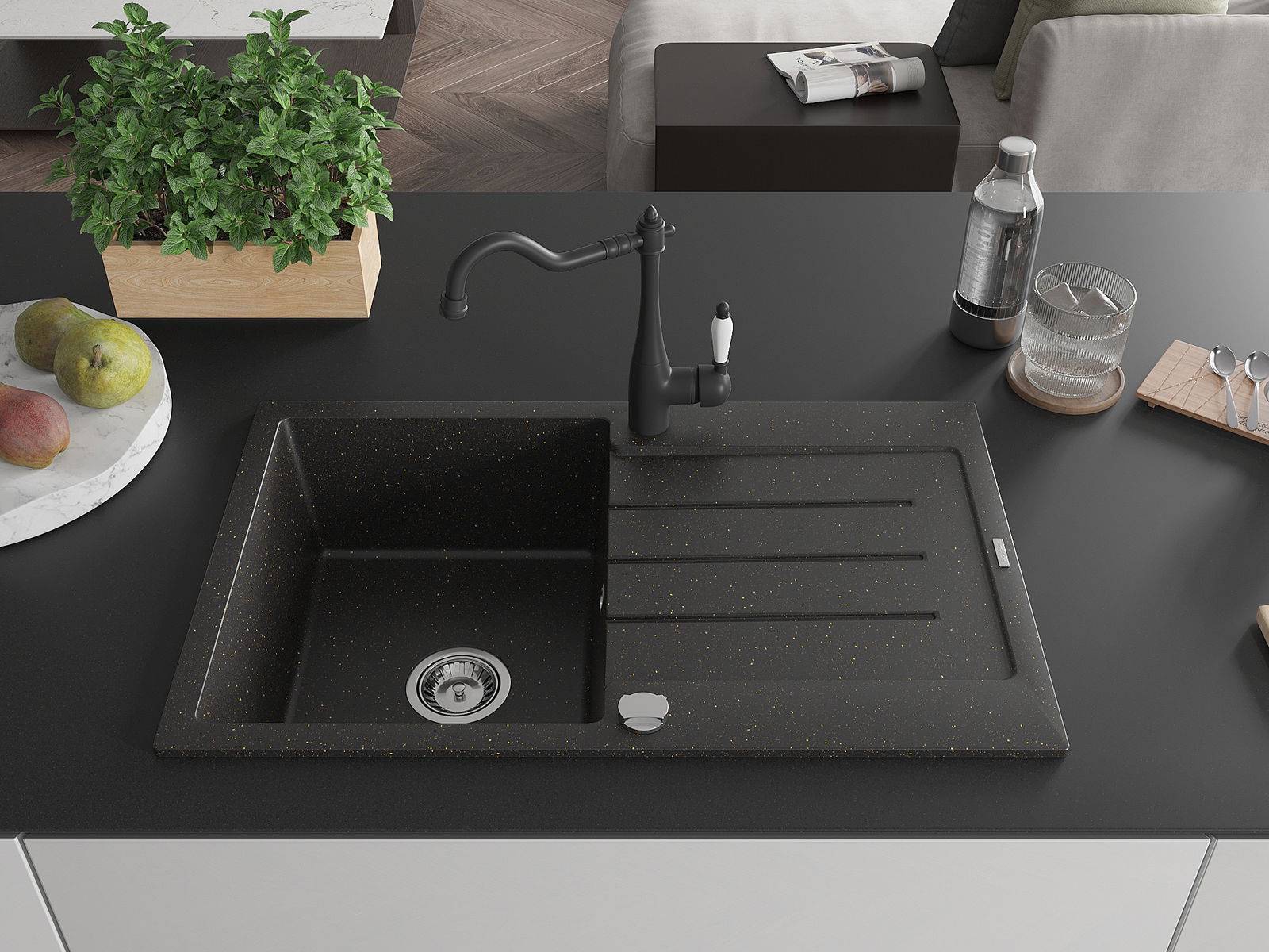 The sink is made of high quality granite. It is an elegant and, above all, practical complement to every kitchen, regardless of its style. High quality and granite durability ensure many years of use.