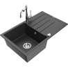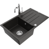 Mexen Bruno granite sink 1-bowl with drainer and Carla kitchen tap, black - 6513-77-670700-00
