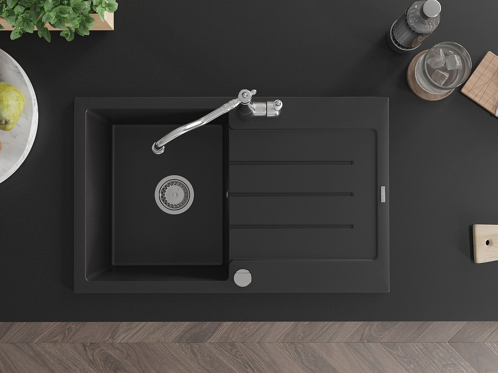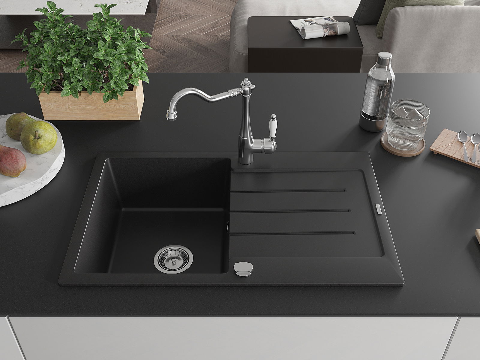 The sink is made of high quality granite. It is an elegant and, above all, practical complement to every kitchen, regardless of its style. High quality and granite durability ensure many years of use.