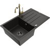 Mexen Bruno 1-bowl granite sink with drainer and Carla kitchen tap, black - 6513-77-670700-50-B