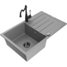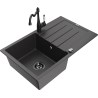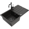 Mexen Bruno 1-bowl granite sink with drainer and Carla kitchen tap, black - 6513-77-670700-70-B