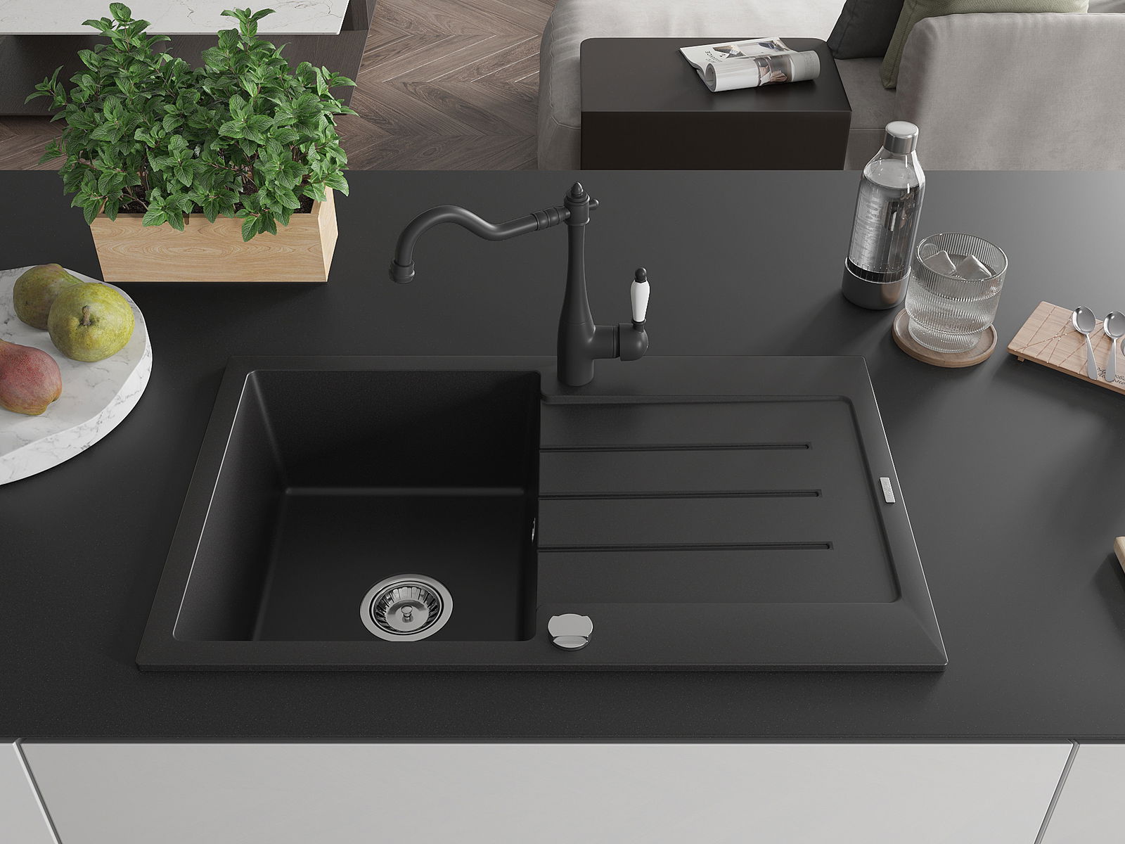 The sink is made of high quality granite. It is an elegant and, above all, practical complement to every kitchen, regardless of its style. High quality and granite durability ensure many years of use.
