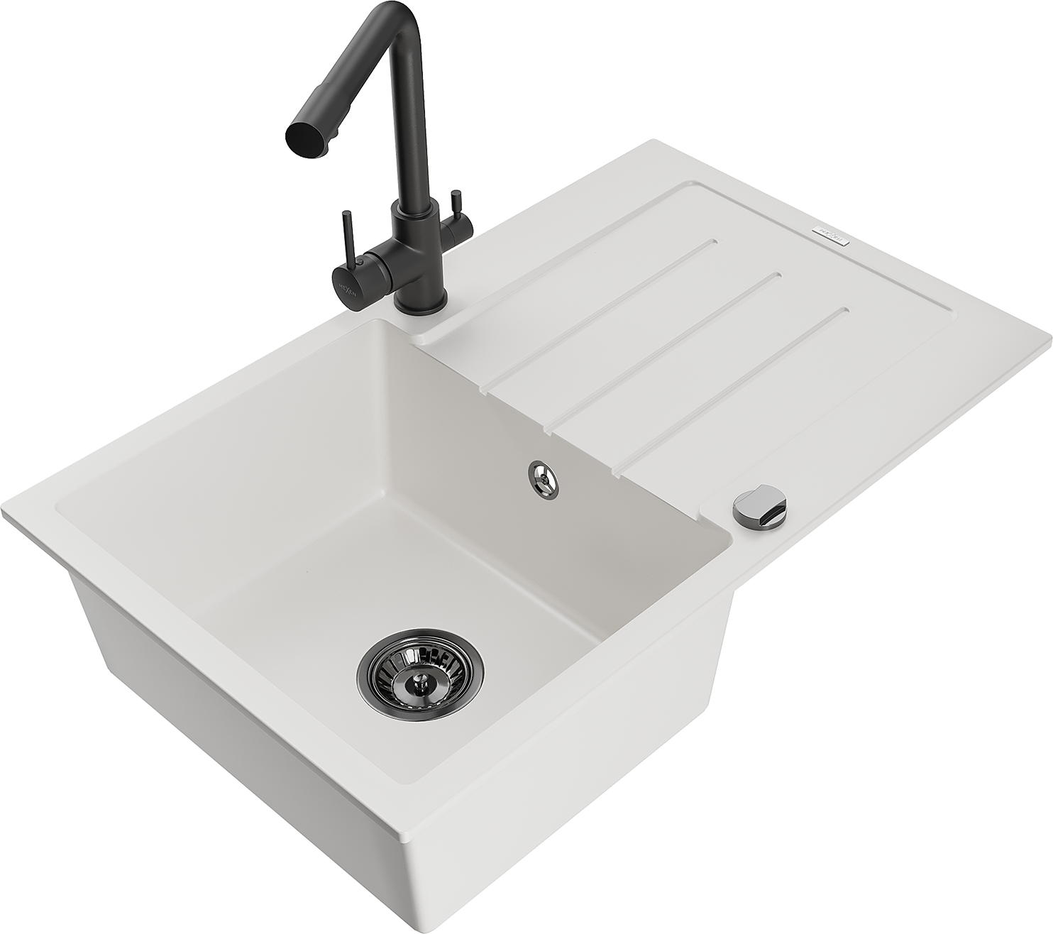 The surface of the sink is resistant to stains and discoloration, thanks to which it is easy to clean and retains its color for a long time. Aesthetic and practically complementing every kitchen.