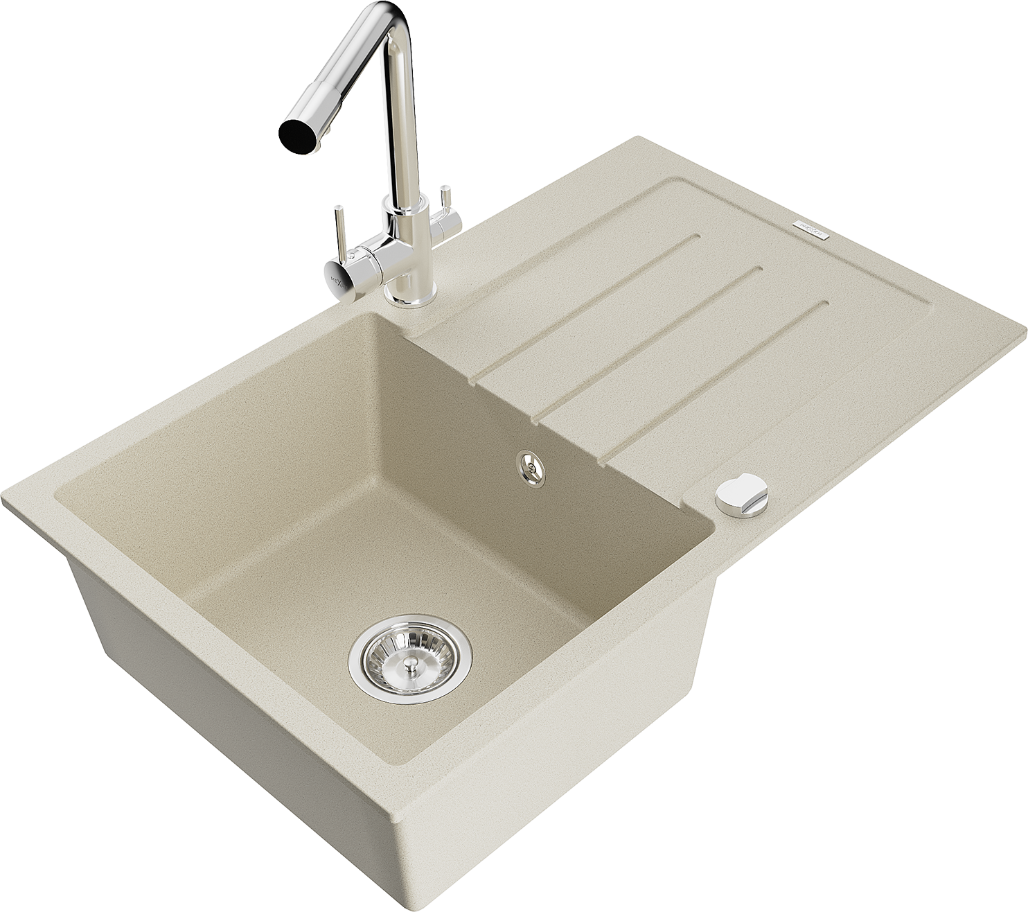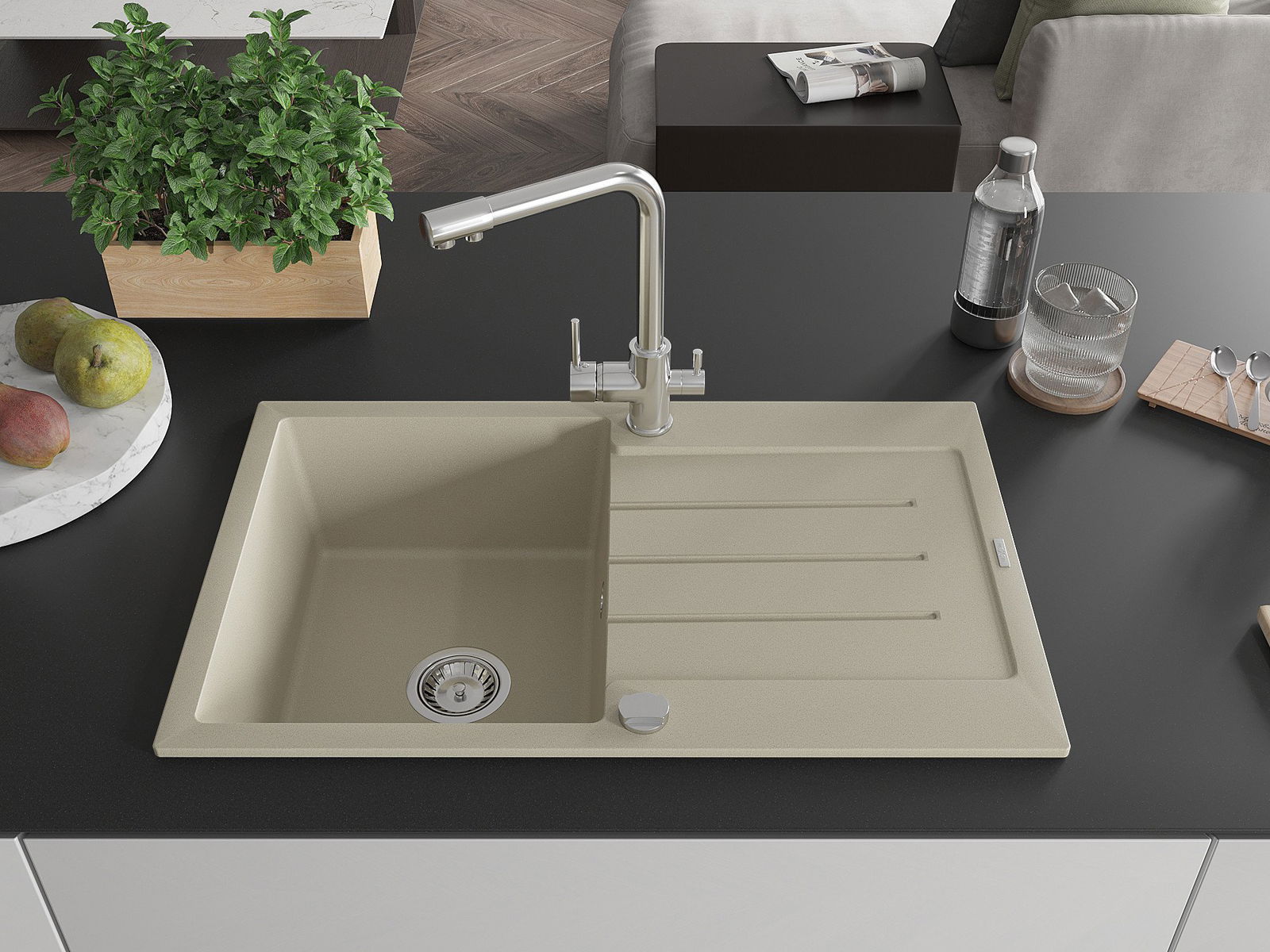 The sink is made of high quality granite. It is an elegant and, above all, practical complement to every kitchen, regardless of its style. High quality and granite durability ensure many years of use.