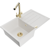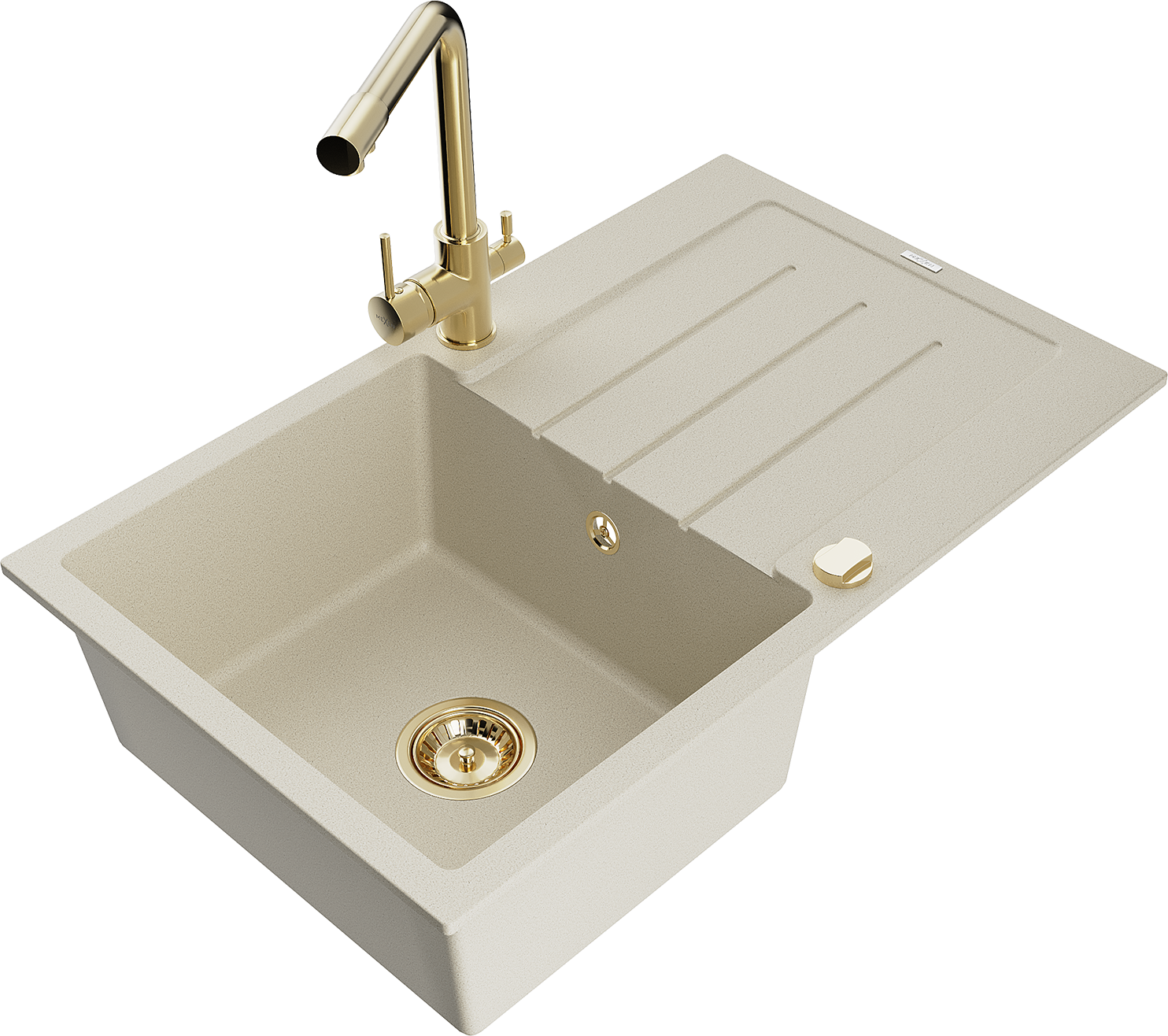 Mexen Bruno granite sink 1-bowl with drainer and Duero kitchen tap, beige - 6513-69-671600-50