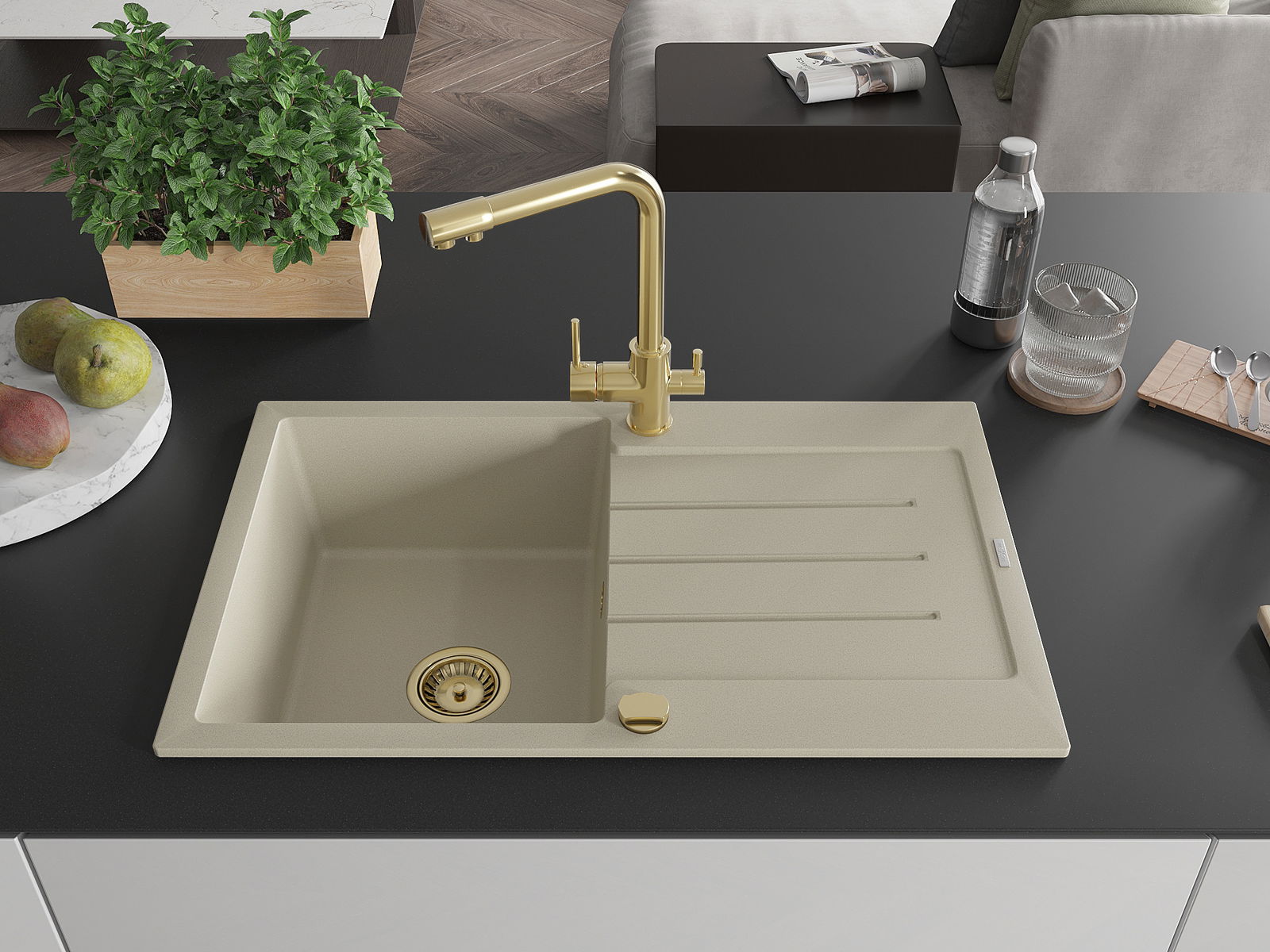 The surface of the sink is resistant to stains and discoloration, thanks to which it is easy to clean and retains its color for a long time. Aesthetic and practically complementing every kitchen.