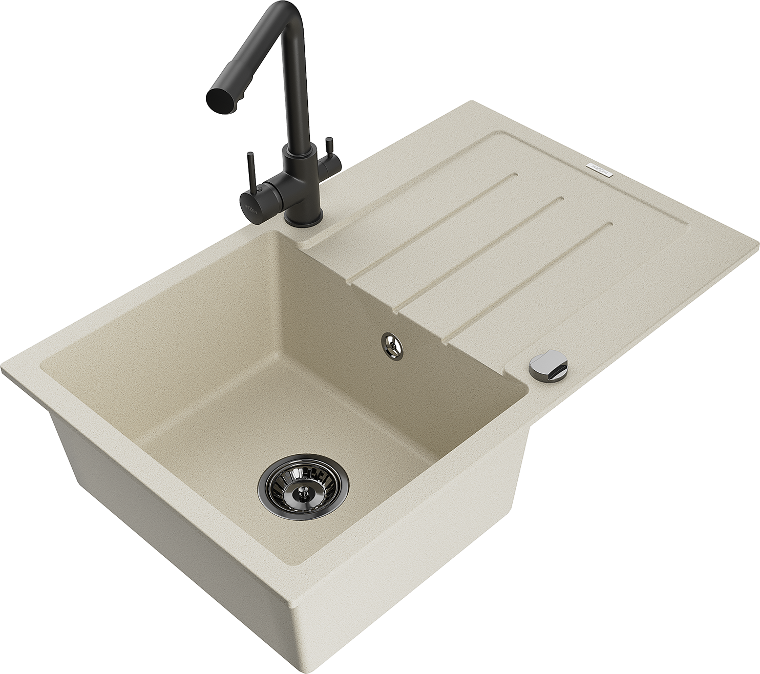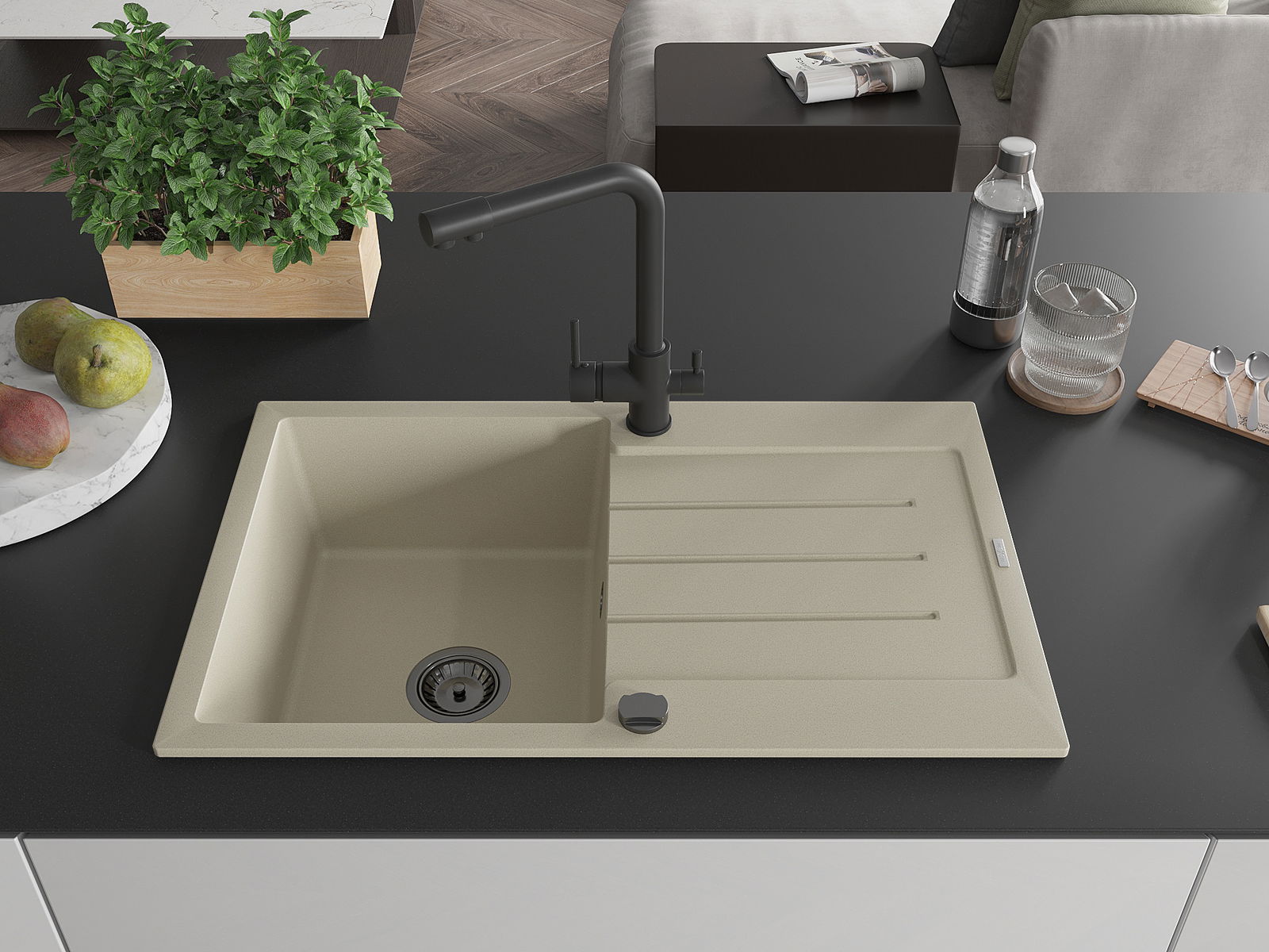 The sink is made of high quality granite. It is an elegant and, above all, practical complement to every kitchen, regardless of its style. High quality and granite durability ensure many years of use.