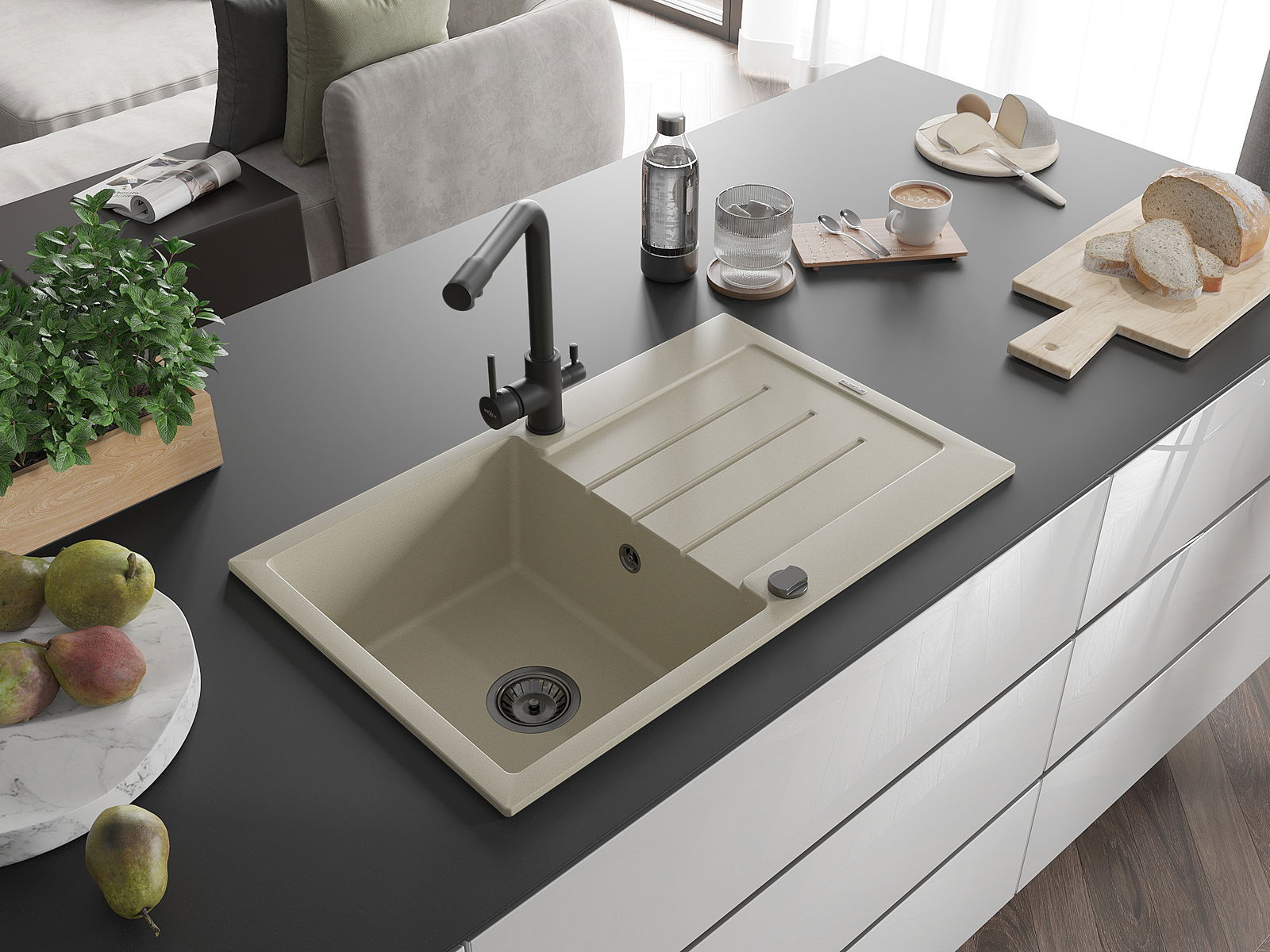 The surface of the sink is resistant to stains and discoloration, thanks to which it is easy to clean and retains its color for a long time. Aesthetic and practically complementing every kitchen.