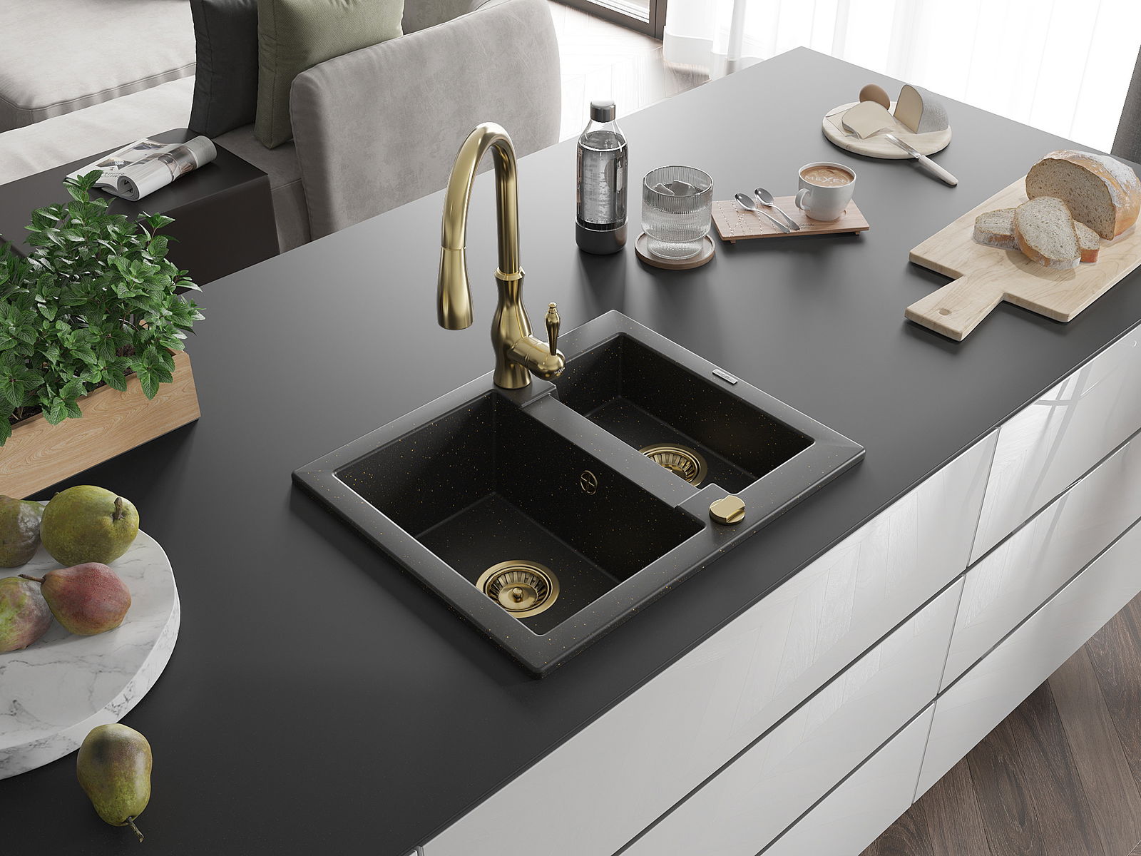 The sink is made from high-quality granite. It serves as an elegant and, above all, practical addition to any kitchen, regardless of its style. The high quality and durability of granite ensure many years of use.