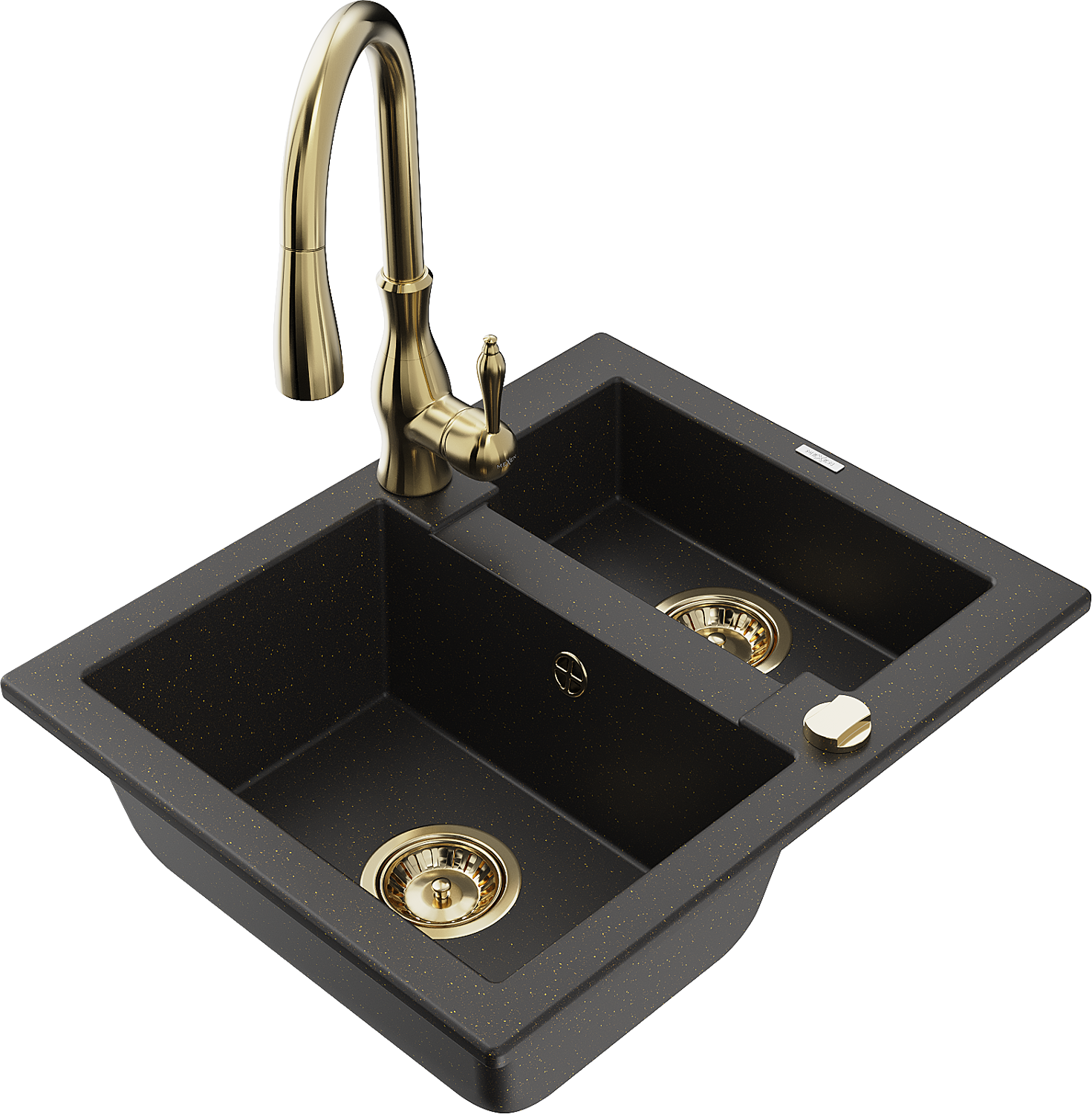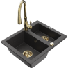 Mexen Carlos granite sink 1.5-bowl with Savita kitchen tap, black/gold metallic - 6518-75-672601-50