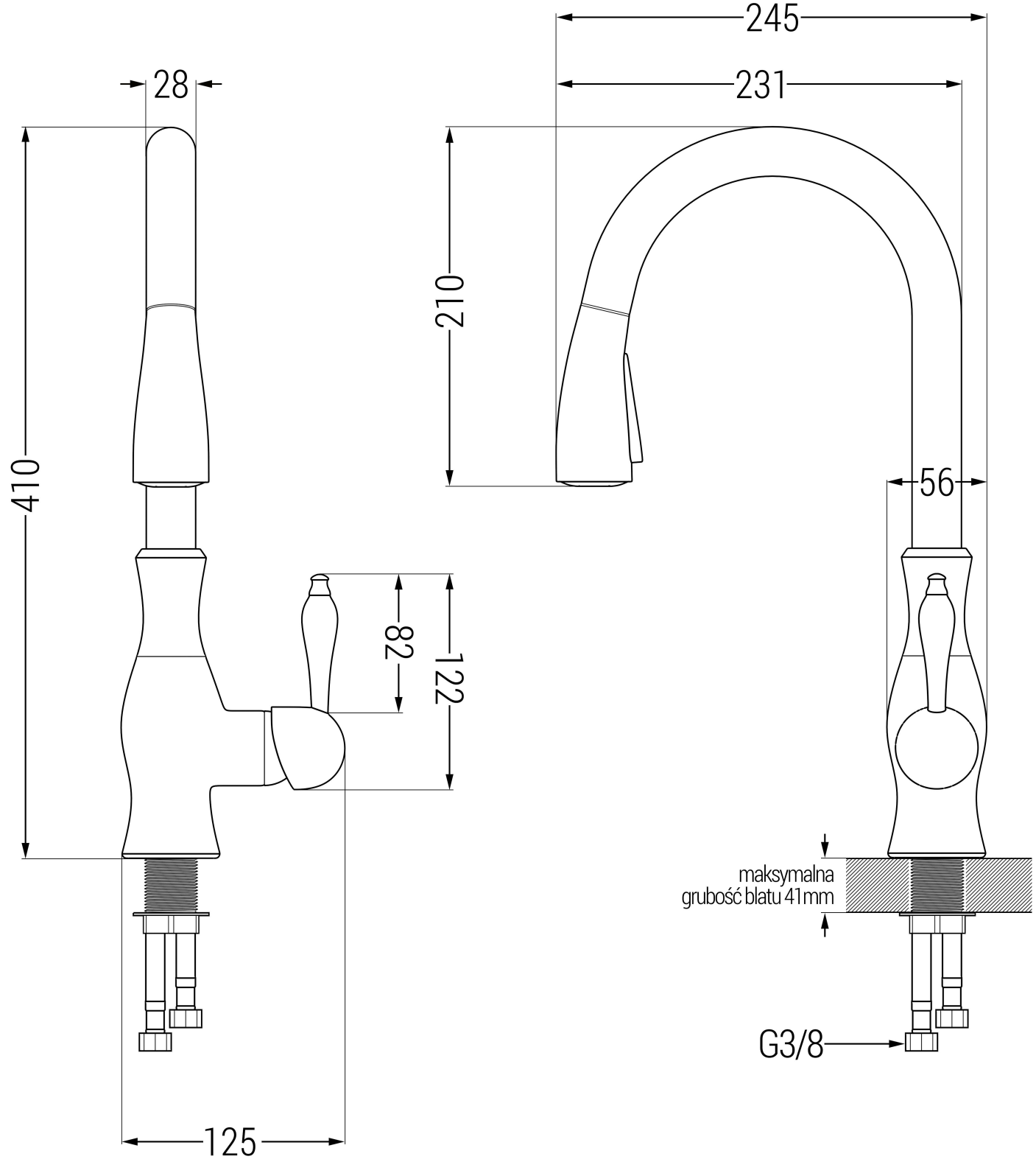 Tap height: 410 mm