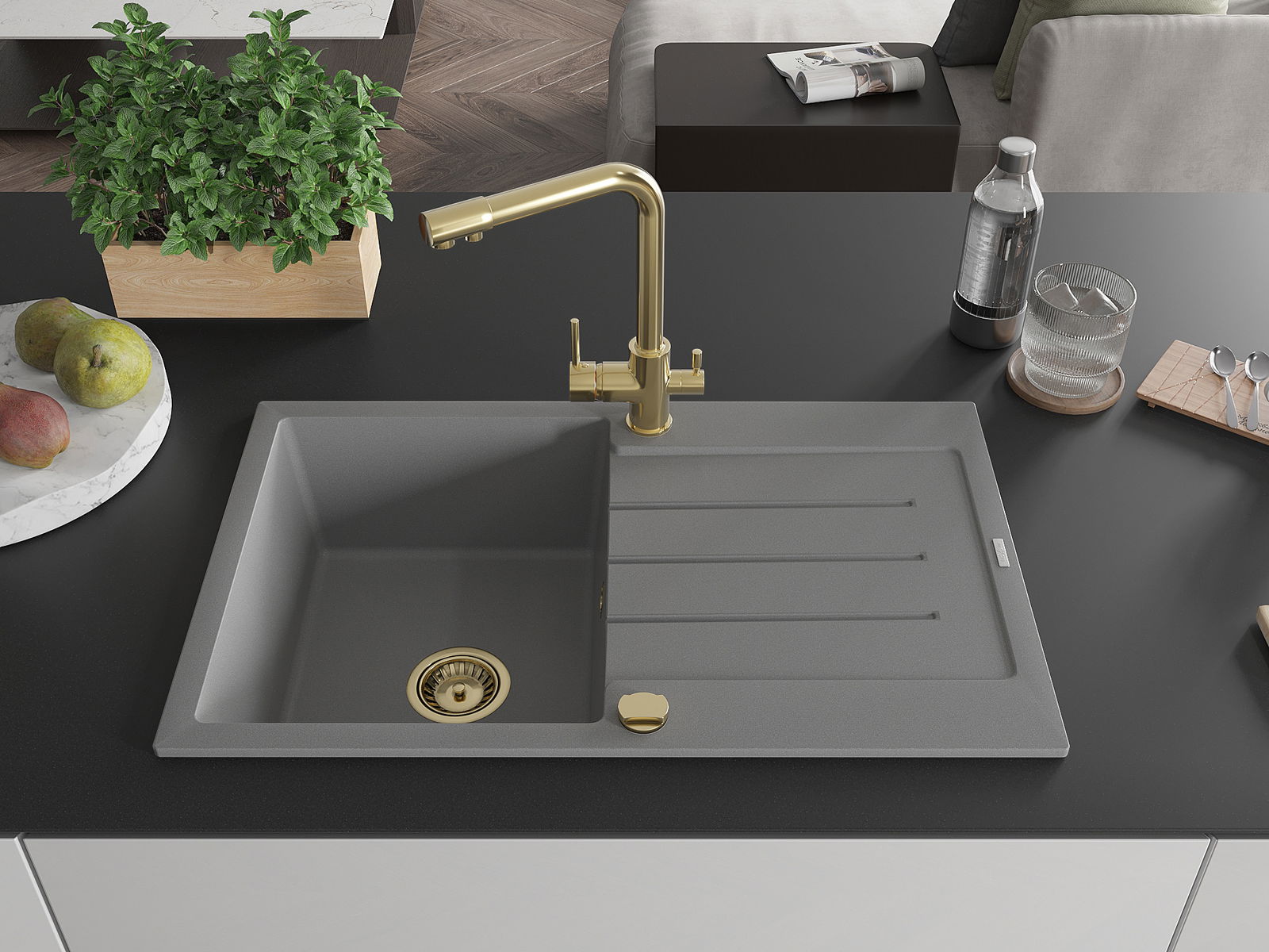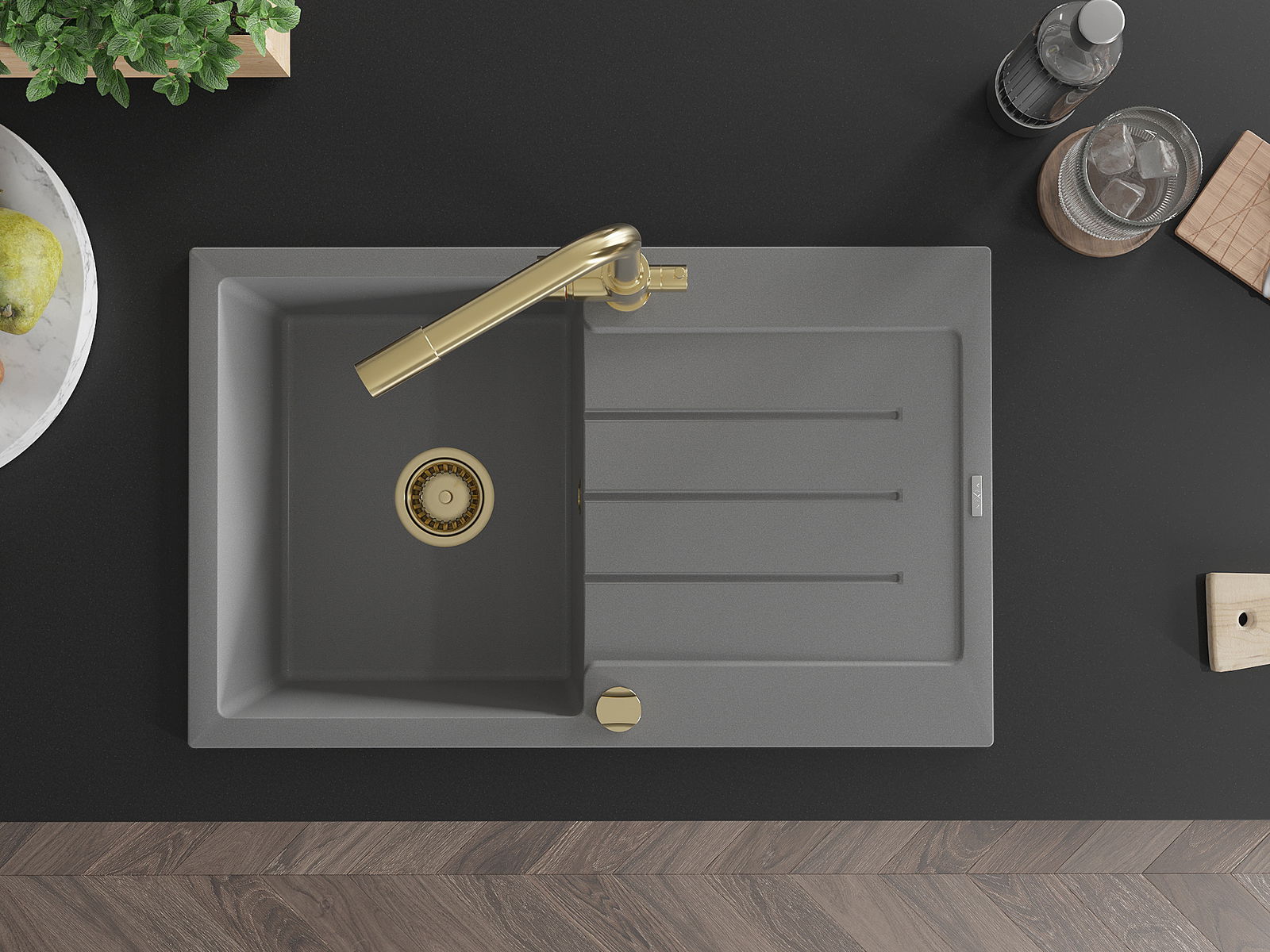 The sink is made of high quality granite. It is an elegant and, above all, practical complement to every kitchen, regardless of its style. High quality and granite durability ensure many years of use.