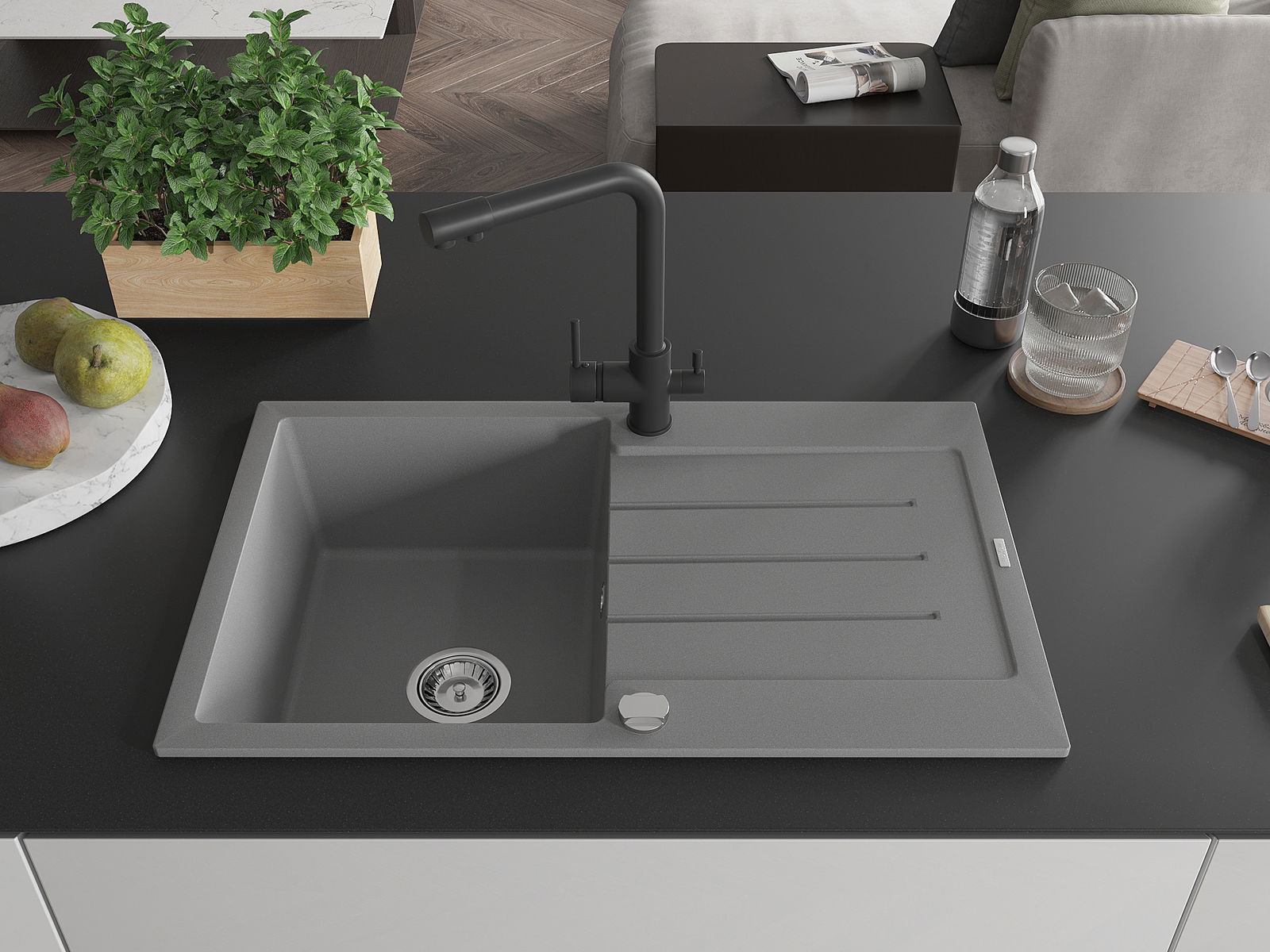 The sink is made of high quality granite. It is an elegant and, above all, practical complement to every kitchen, regardless of its style. High quality and granite durability ensure many years of use.