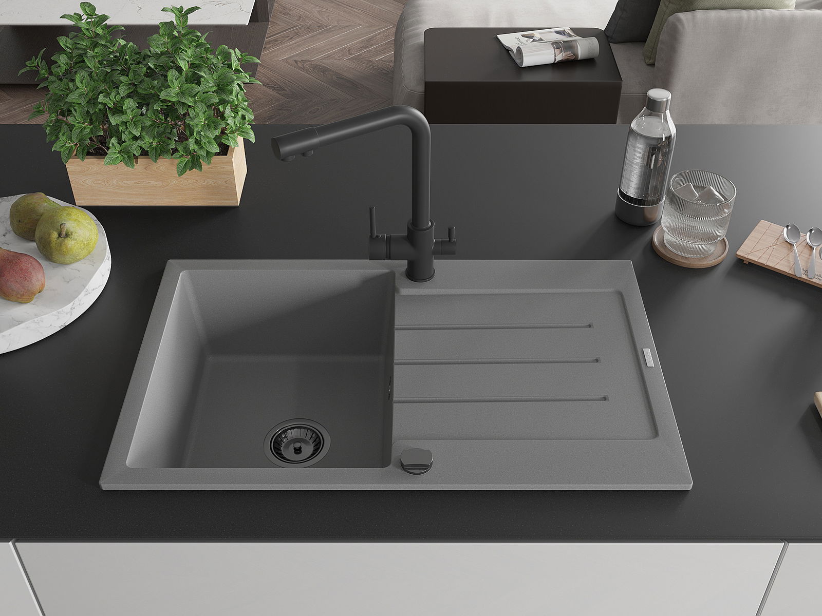The sink is made of high quality granite. It is an elegant and, above all, practical complement to every kitchen, regardless of its style. High quality and granite durability ensure many years of use.