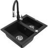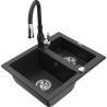 Mexen Carlos granite sink 1.5-bowl with Savita kitchen tap, black speckled - 6518-76-672601-70