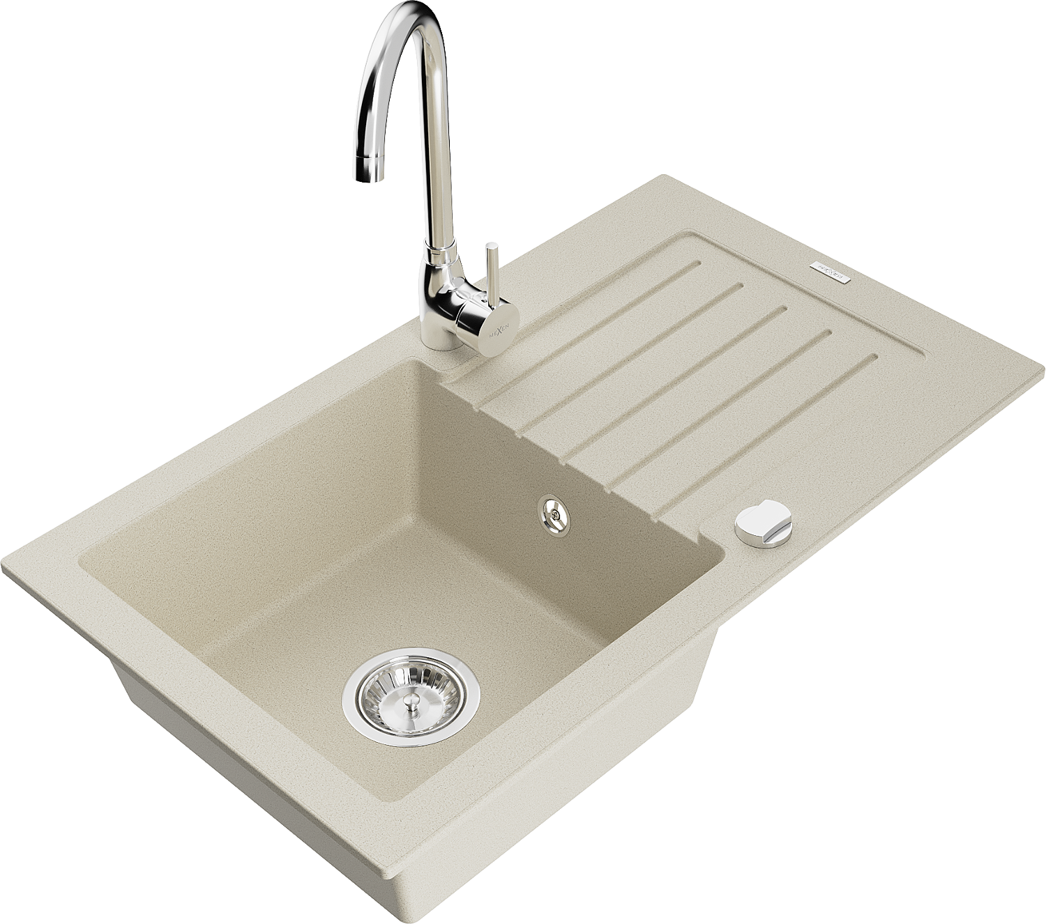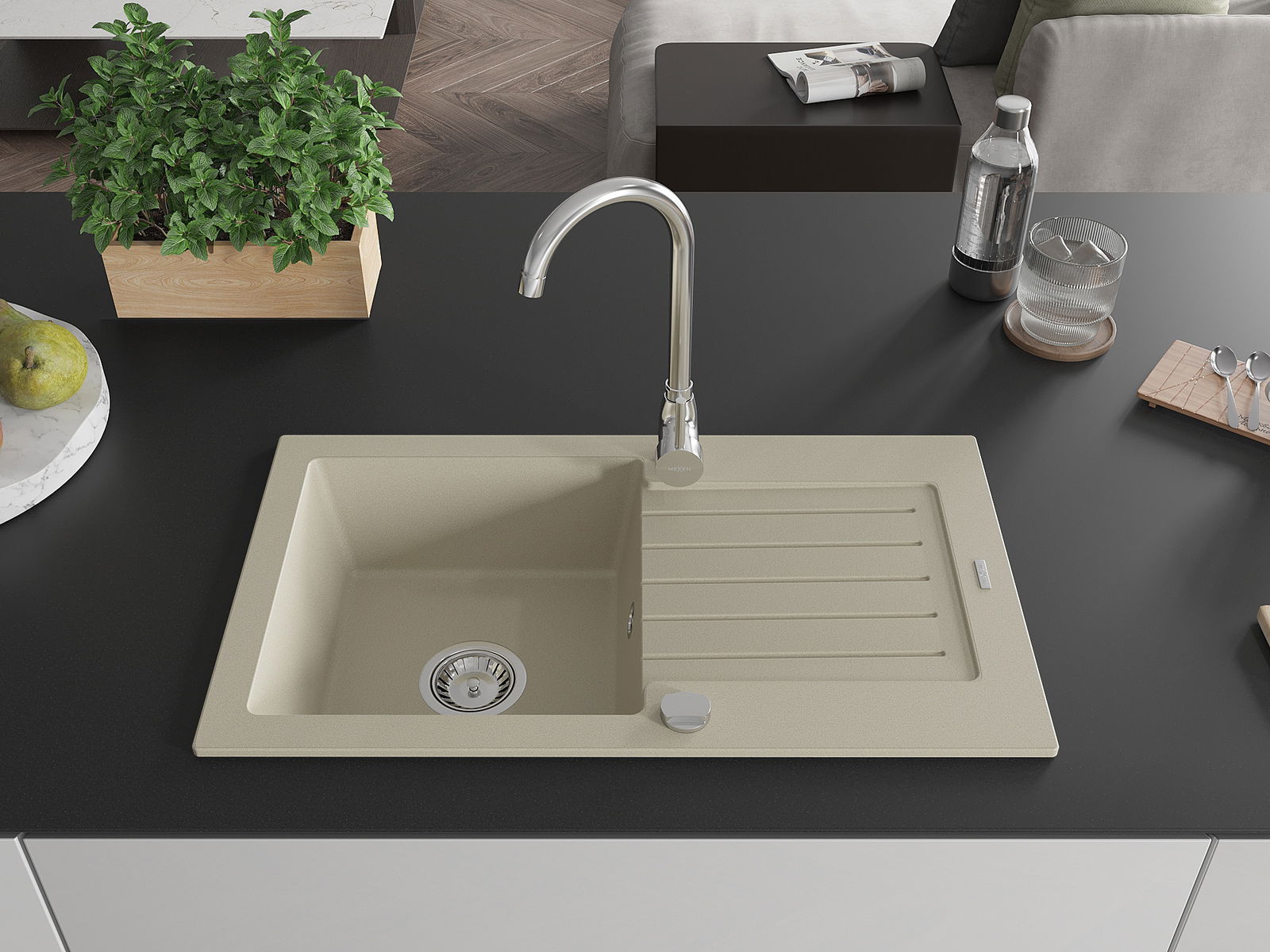 Mexen Pablo granite sink 1-bowl with drainer and Telma kitchen tap, beige - 6510-69-670200-00