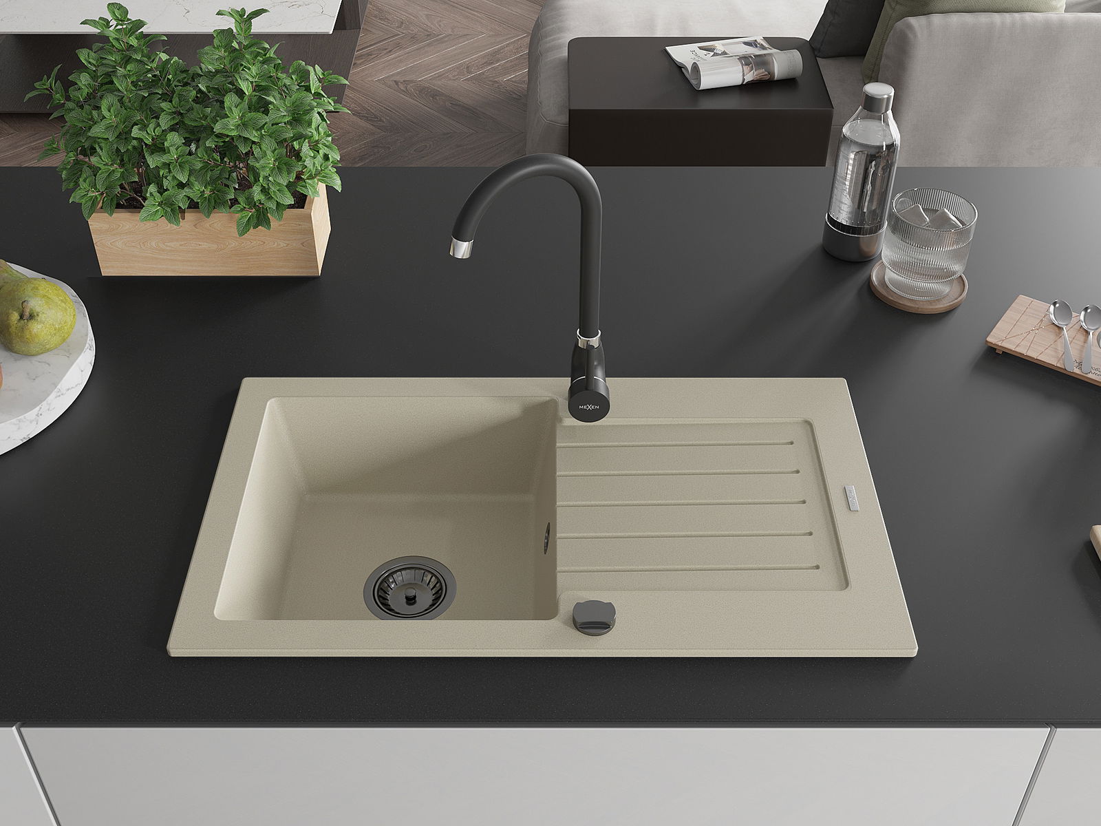 Mexen Pablo granite sink 1-bowl with drainer and Telma kitchen tap, beige - 6510-69-670200-70