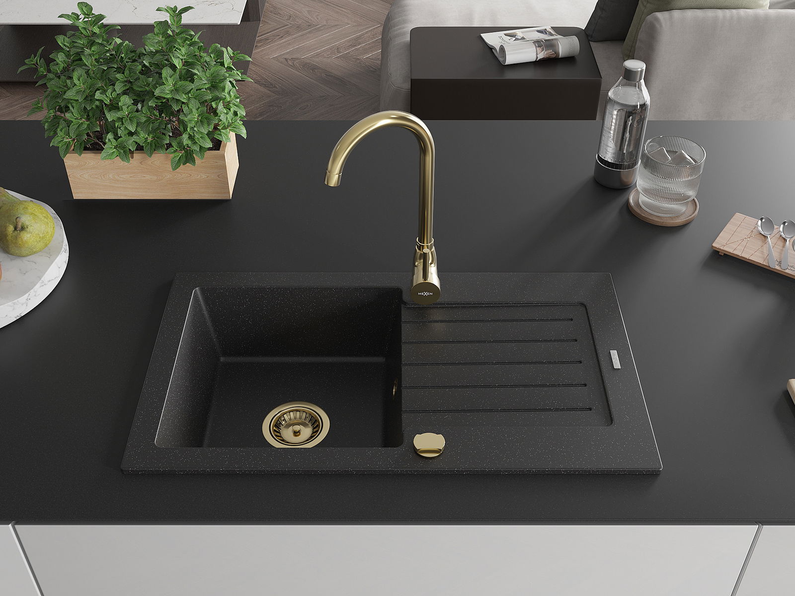 The sink is made of high quality granite. It is an elegant and, above all, practical complement to every kitchen, regardless of its style. High quality and granite durability ensure many years of use.