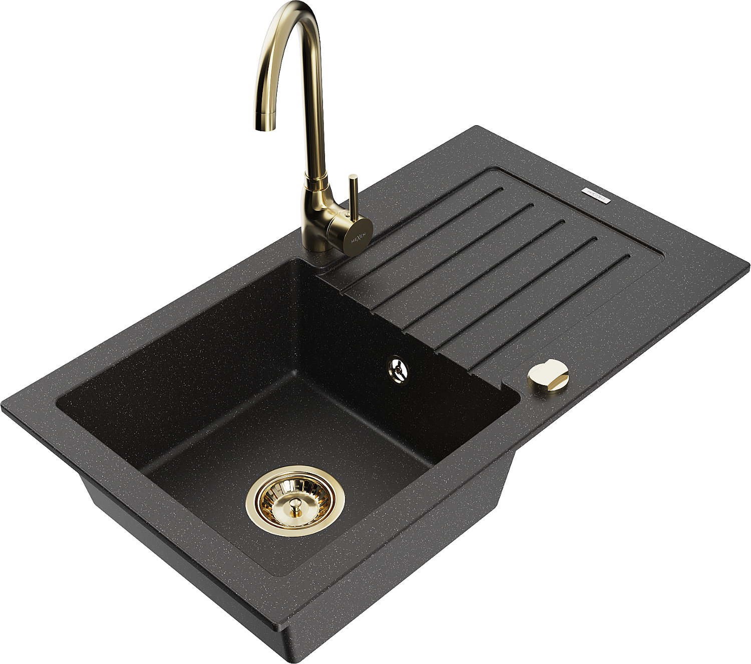 Mexen Pablo granite sink 1-bowl with drainer and Telma kitchen tap, black/silver - 6510-73-670200-50