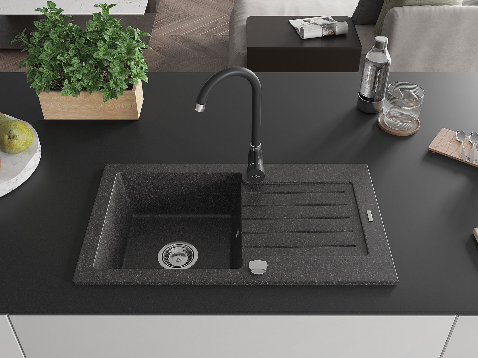The sink is made of high quality granite. It is an elegant and, above all, practical complement to every kitchen, regardless of its style. High quality and granite durability ensure many years of use.