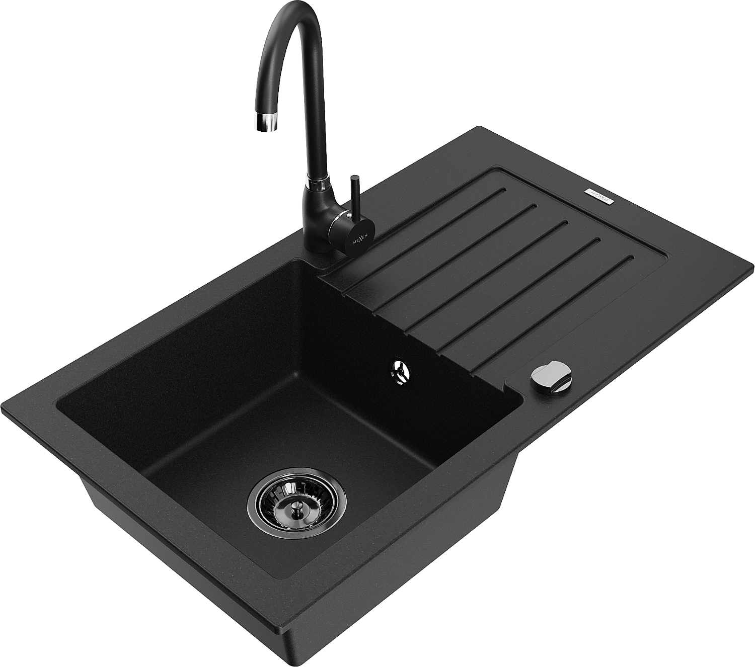 Mexen Pablo 1-bowl granite sink with drainer and Telma kitchen tap, black - 6510-77-670200-70-B