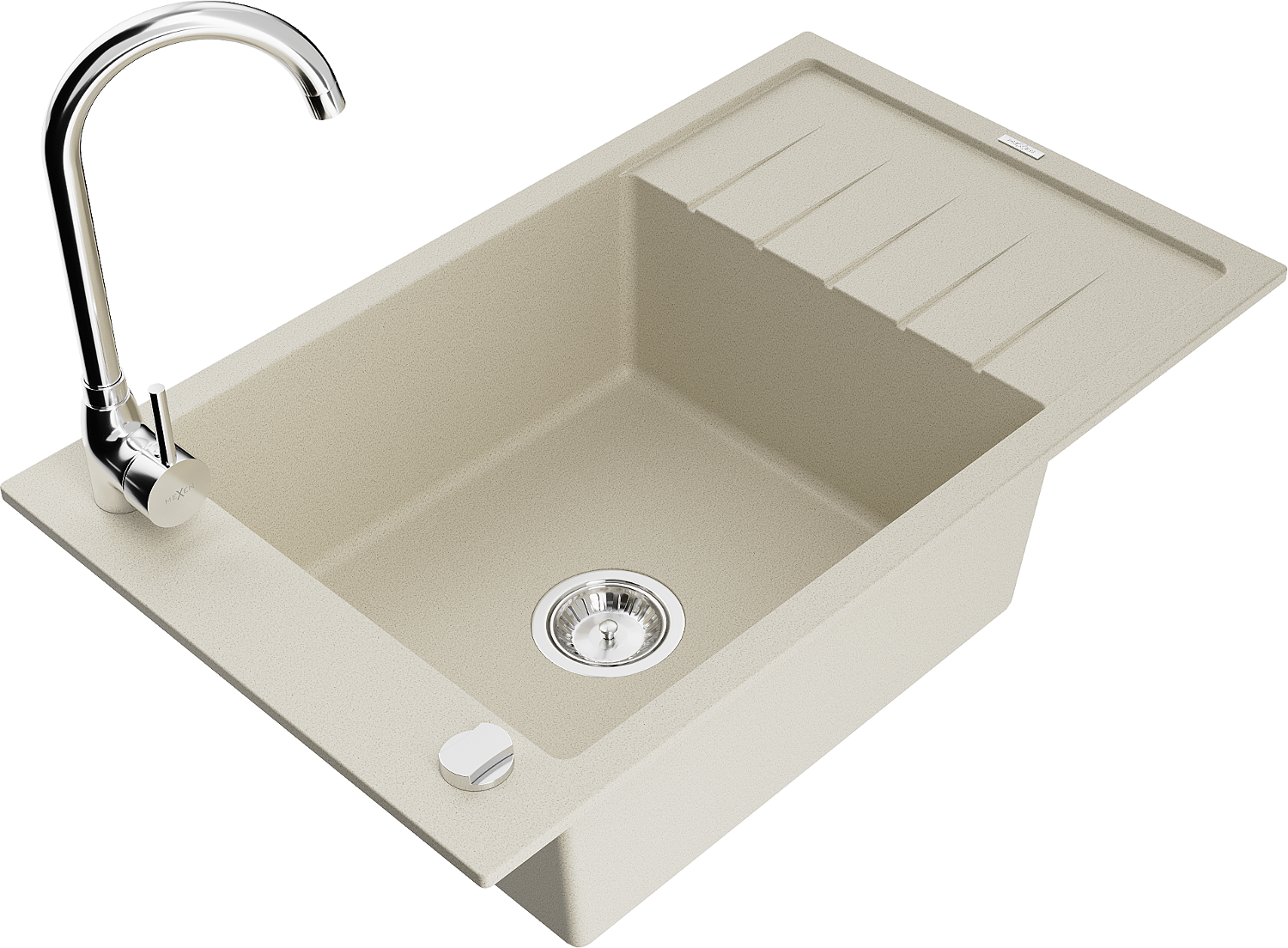 Mexen Elias 1-bowl granite sink with drainer and Telma kitchen tap, beige - 6511-69-670200-00