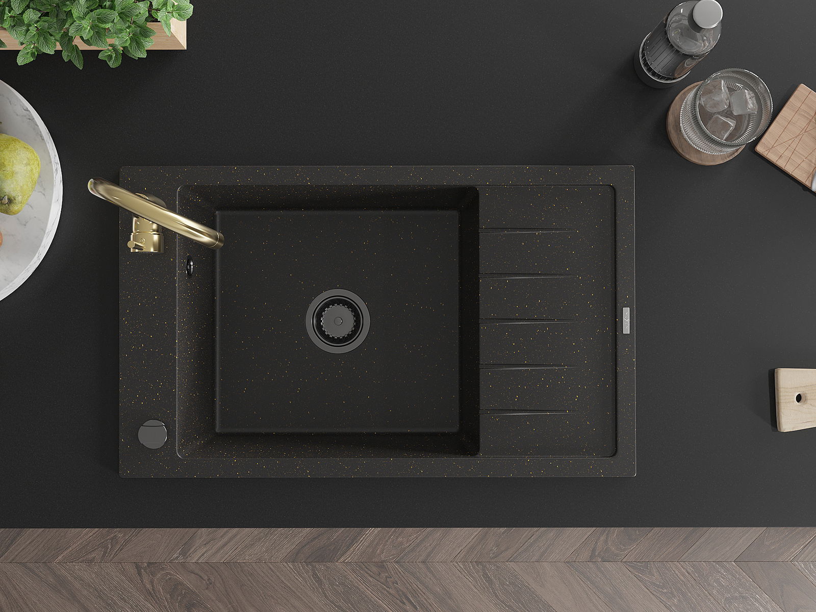 The sink is made of high quality granite. It is an elegant and, above all, practical complement to every kitchen, regardless of its style. High quality and granite durability ensure many years of use.