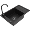 Mexen Elias granite sink 1-bowl with drainer and Telma kitchen tap, speckled black - 6511-76-670200-70-B