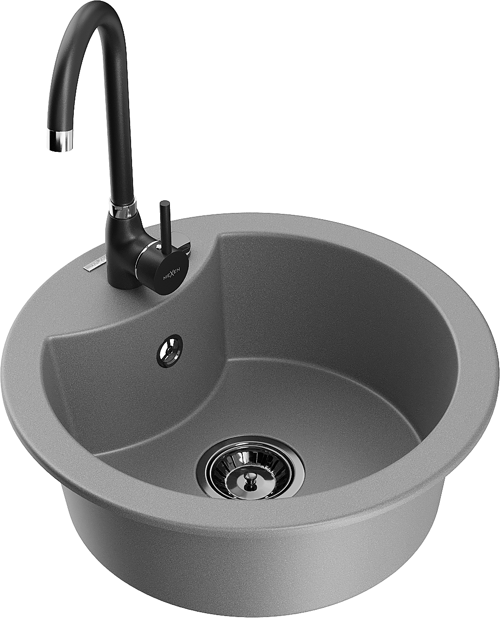 Mexen Diego granite sink 1-bowl with Telma kitchen tap, grey - 6512-71-670200-70-B