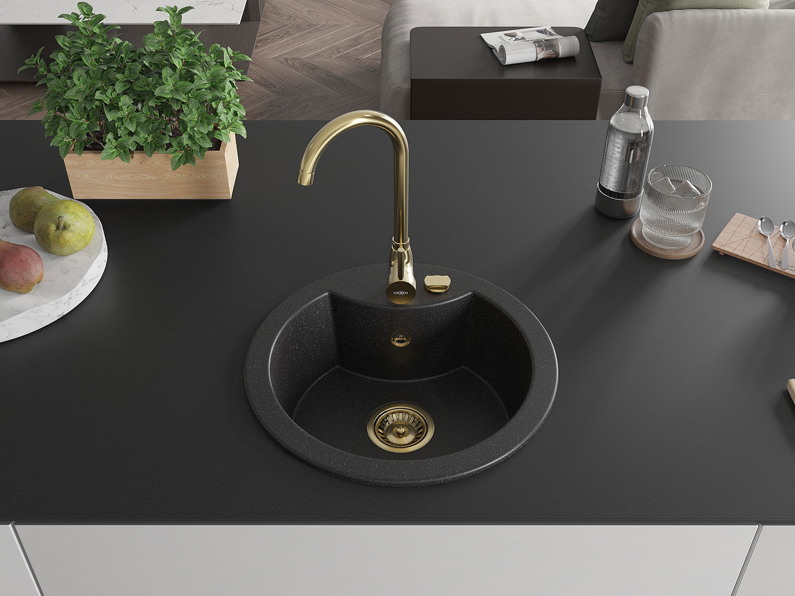 The sink is made of high quality granite. It is an elegant and, above all, practical complement to every kitchen, regardless of its style. High quality and granite durability ensure many years of use.