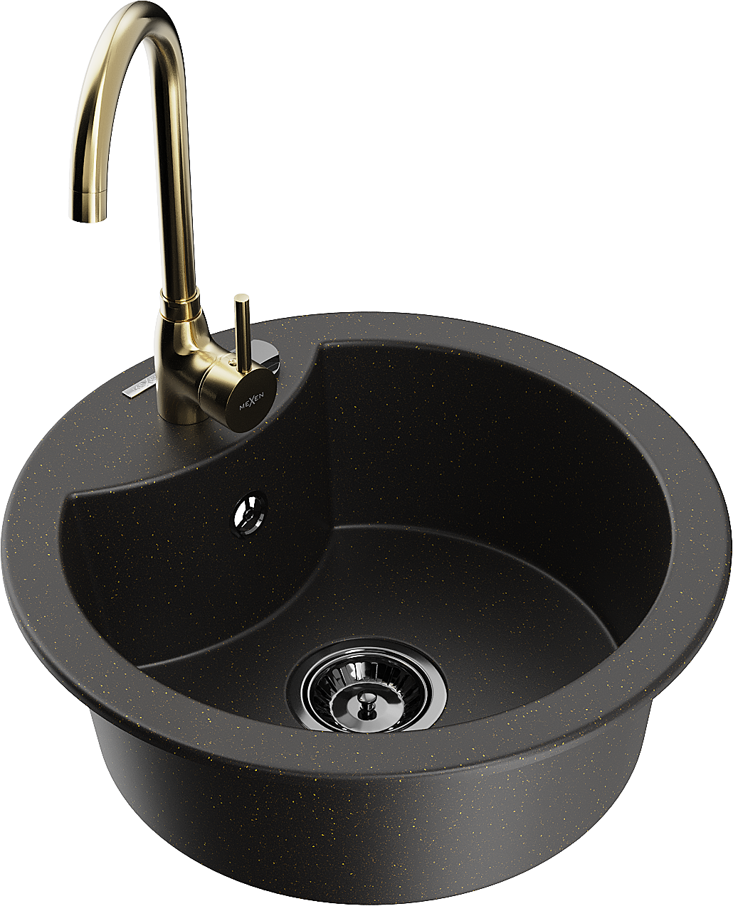 Mexen Diego granite kitchen sink 1-bowl with Telma kitchen tap, black/gold - 6512-75-670200-50-B