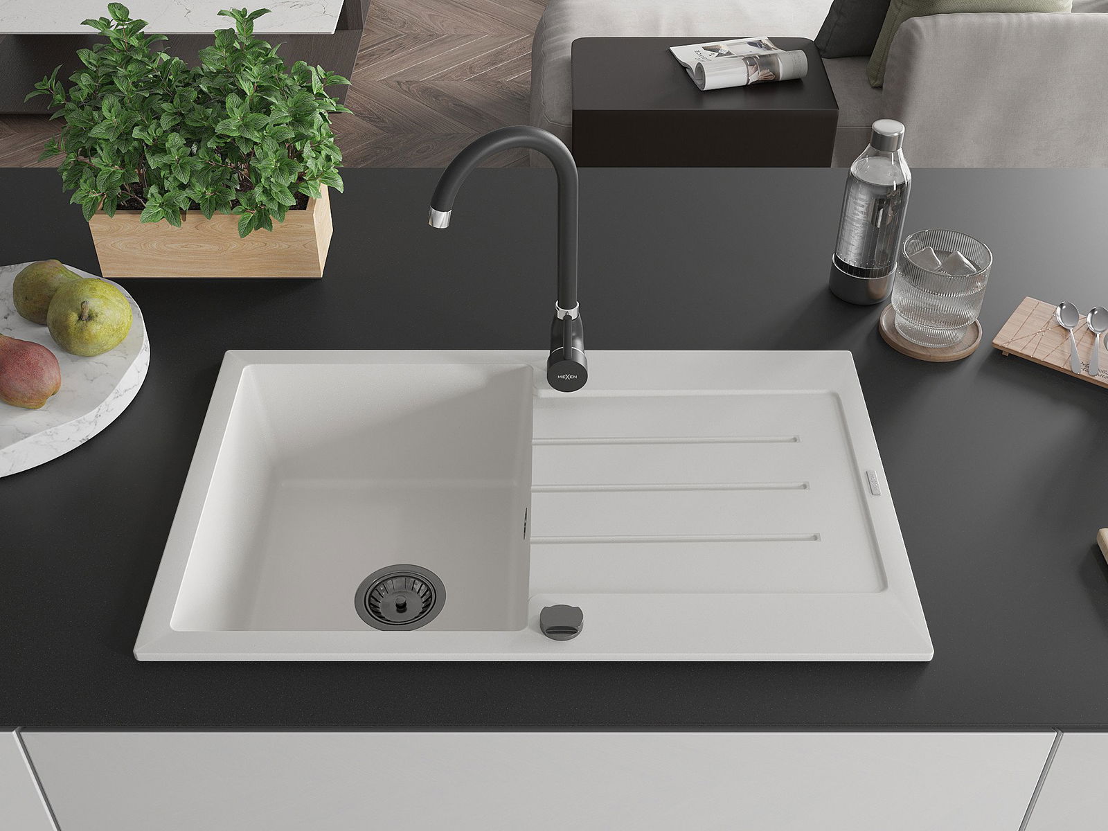 The surface of the sink is resistant to stains and discoloration, thanks to which it is easy to clean and retains its color for a long time. Aesthetic and practically complementing every kitchen.