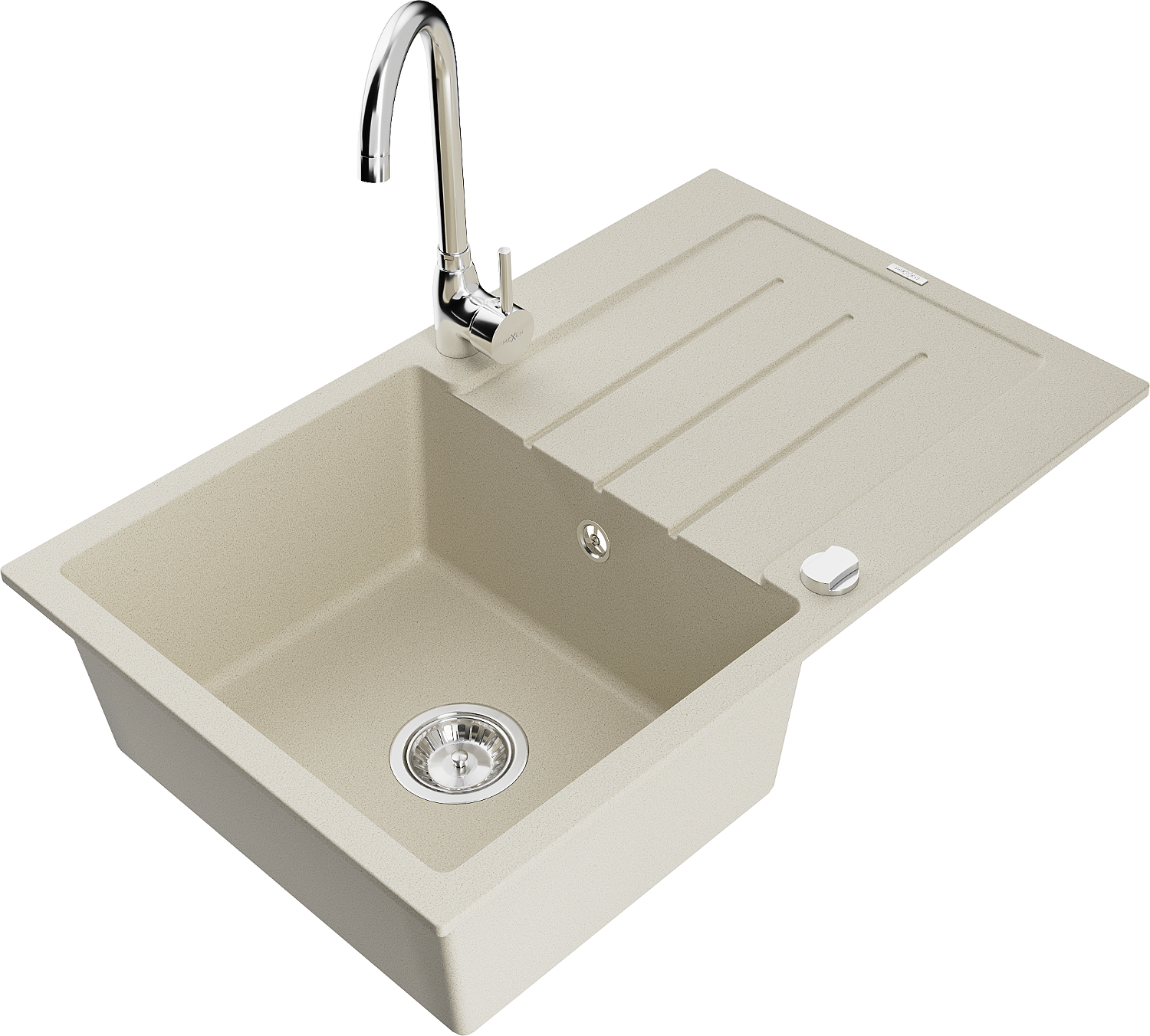 Mexen Bruno granite sink 1-bowl with drainer and Telma kitchen tap, beige - 6513-69-670200-00