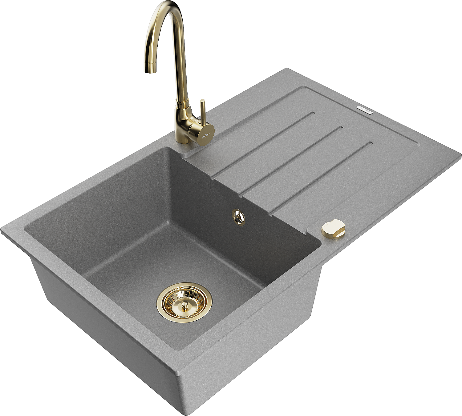 Mexen Bruno 1-bowl granite sink with drainer and Telma kitchen tap, grey - 6513-71-670200-50