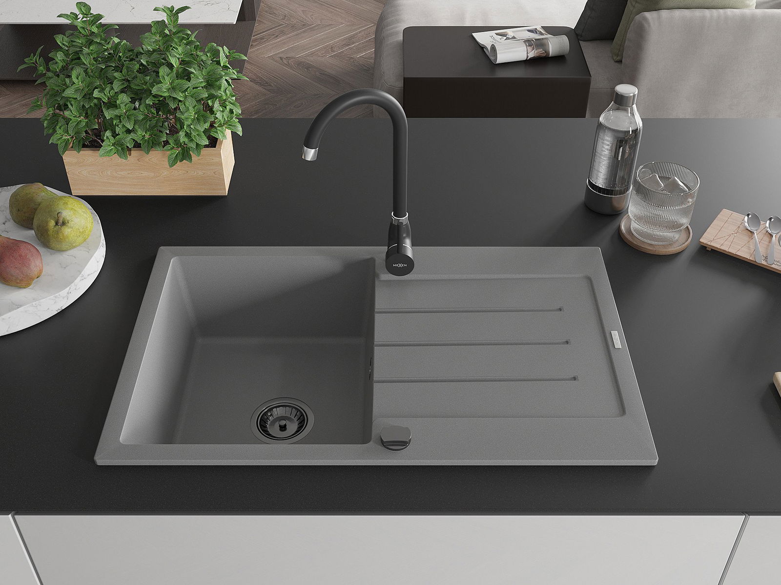 The sink is made of high quality granite. It is an elegant and, above all, practical complement to every kitchen, regardless of its style. High quality and granite durability ensure many years of use.