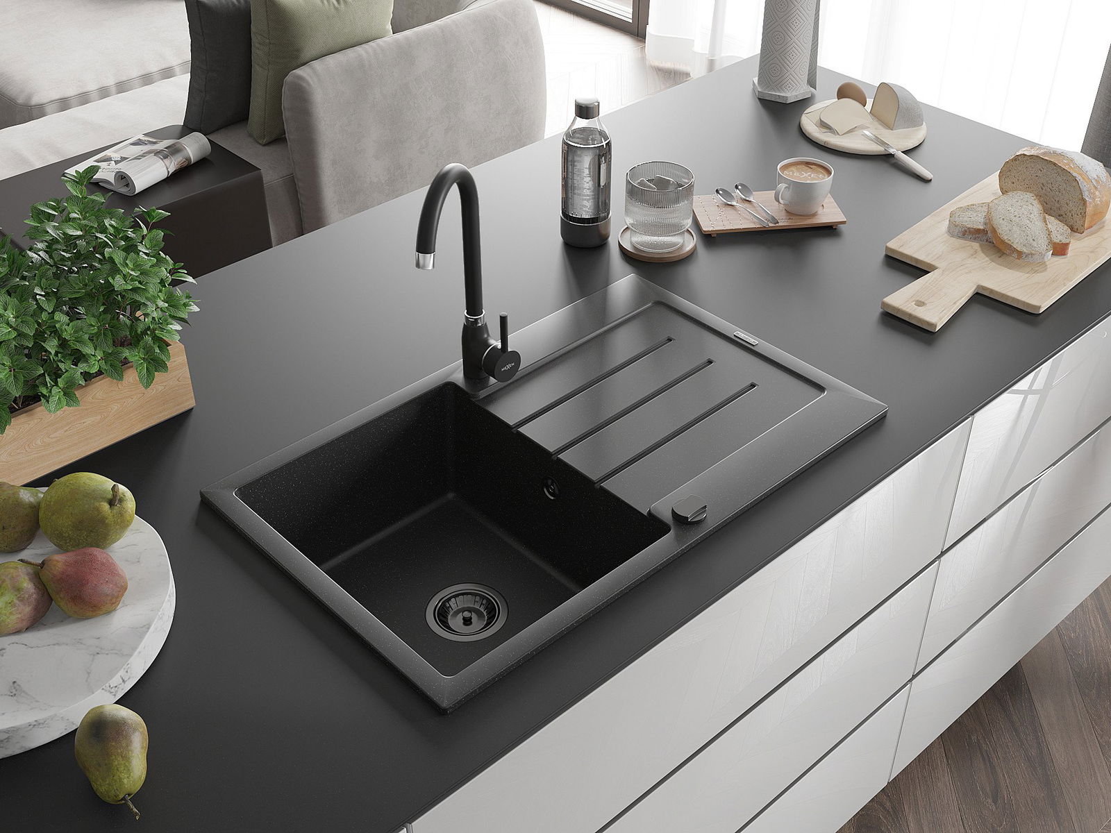 The sink is made of high quality granite. It is an elegant and, above all, practical complement to every kitchen, regardless of its style. High quality and granite durability ensure many years of use.