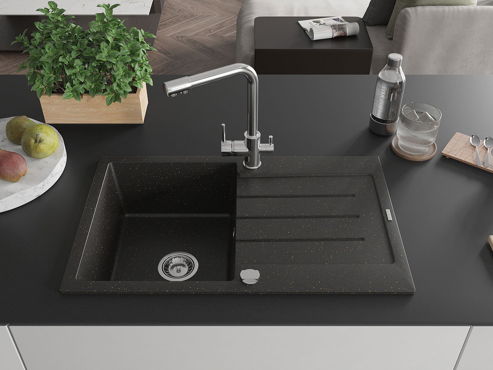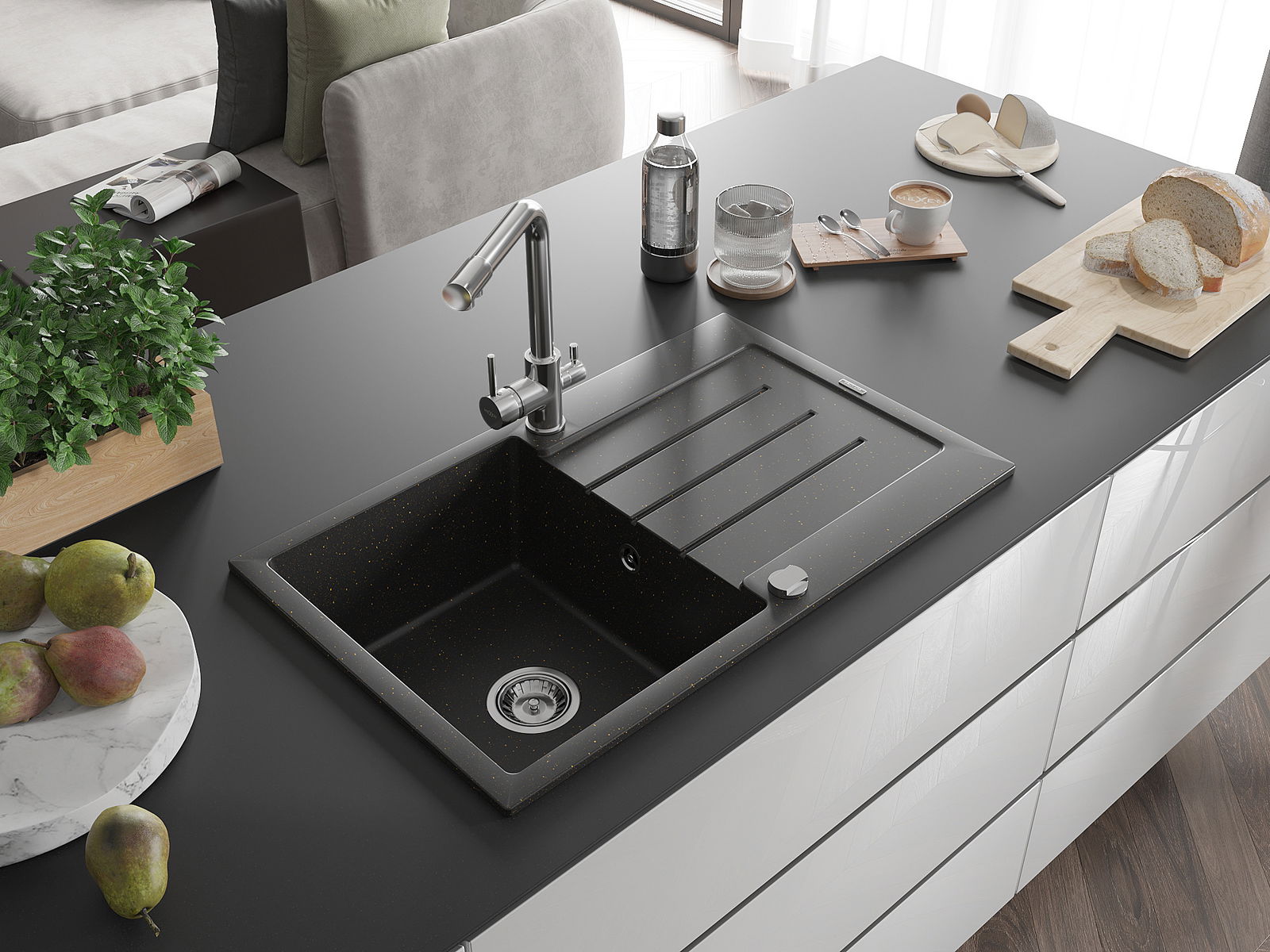 The sink is made of high quality granite. It is an elegant and, above all, practical complement to every kitchen, regardless of its style. High quality and granite durability ensure many years of use.