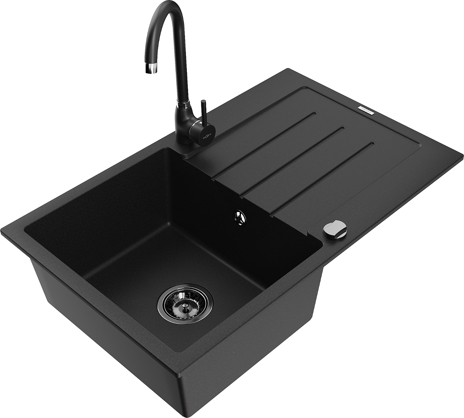 Mexen Bruno granite sink 1-bowl with drainer and Telma kitchen tap, black - 6513-77-670200-70-B