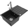 Mexen Bruno granite sink 1-bowl with drainer and Duero kitchen tap, black speckled - 6513-76-671600-00