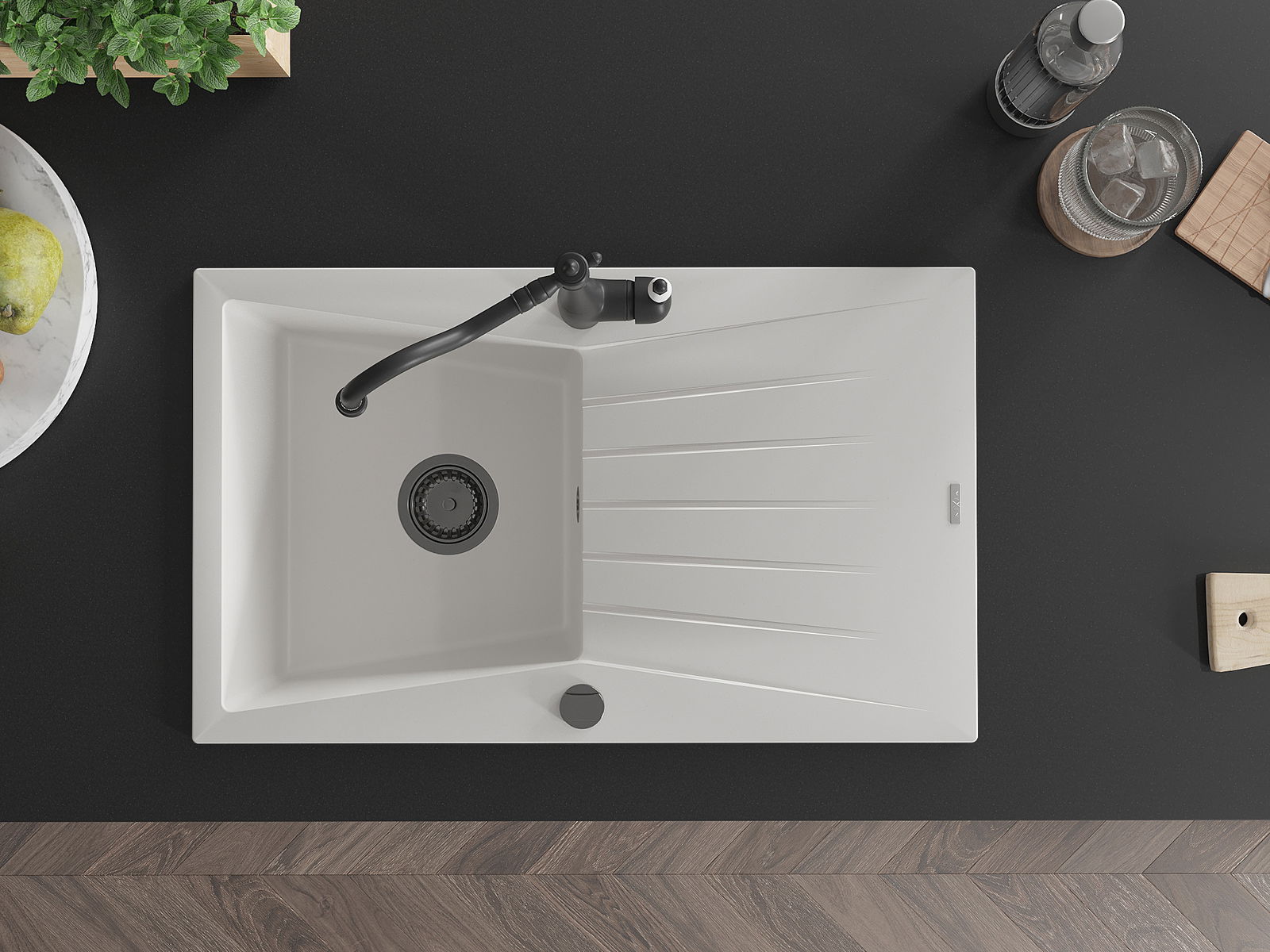 The surface of the sink is resistant to stains and discoloration, thanks to which it is easy to clean and retains its color for a long time. Aesthetic and practically complementing every kitchen.