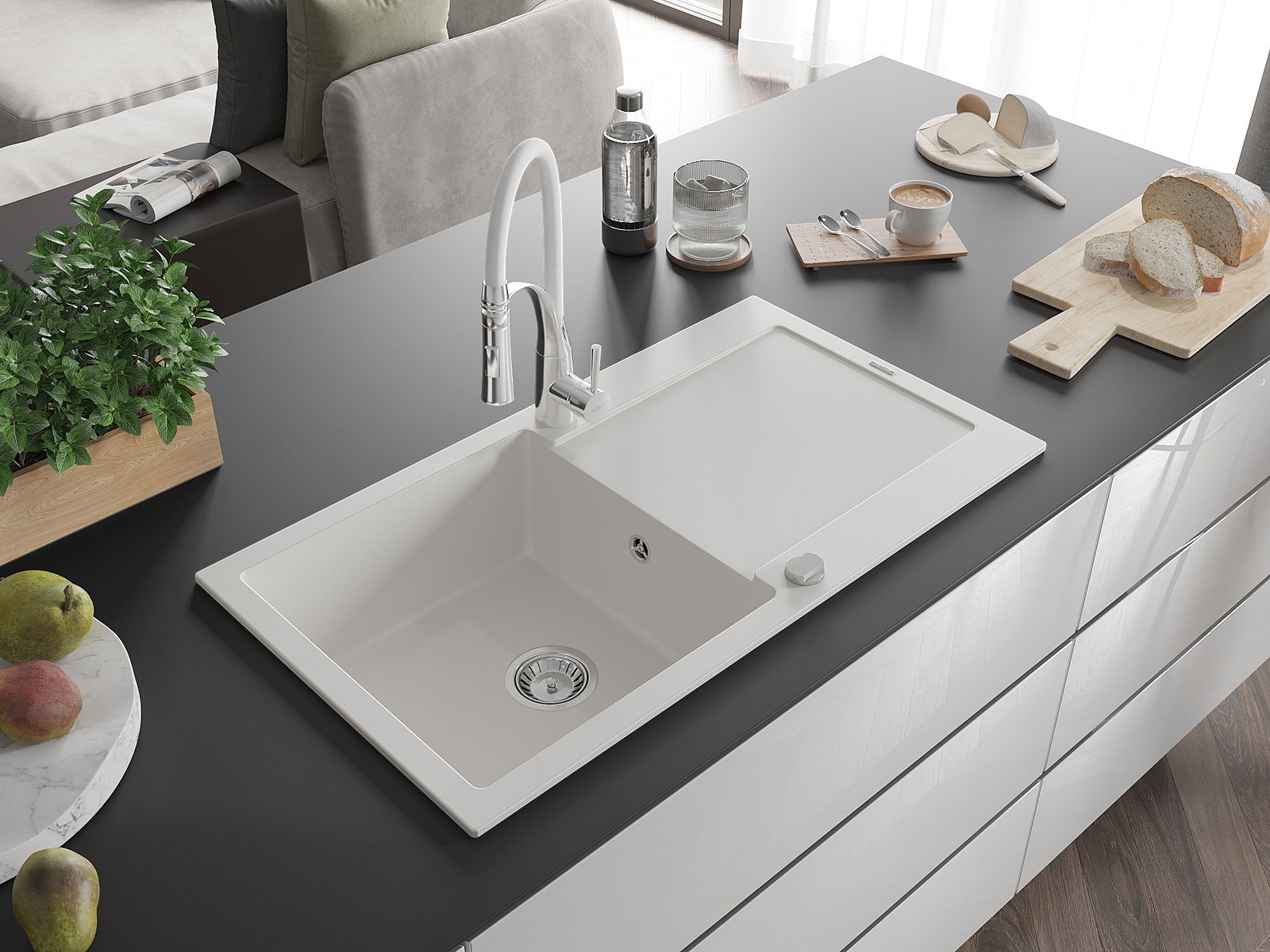 The surface of the sink is resistant to stains and discoloration, thanks to which it is easy to clean and retains its color for a long time. Aesthetic and practically complementing every kitchen.