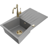 Mexen Cesar Granite Sink 1-Bowl with Drainer and Kitchen Tap Carla, Beige - 6514-69-670700-50