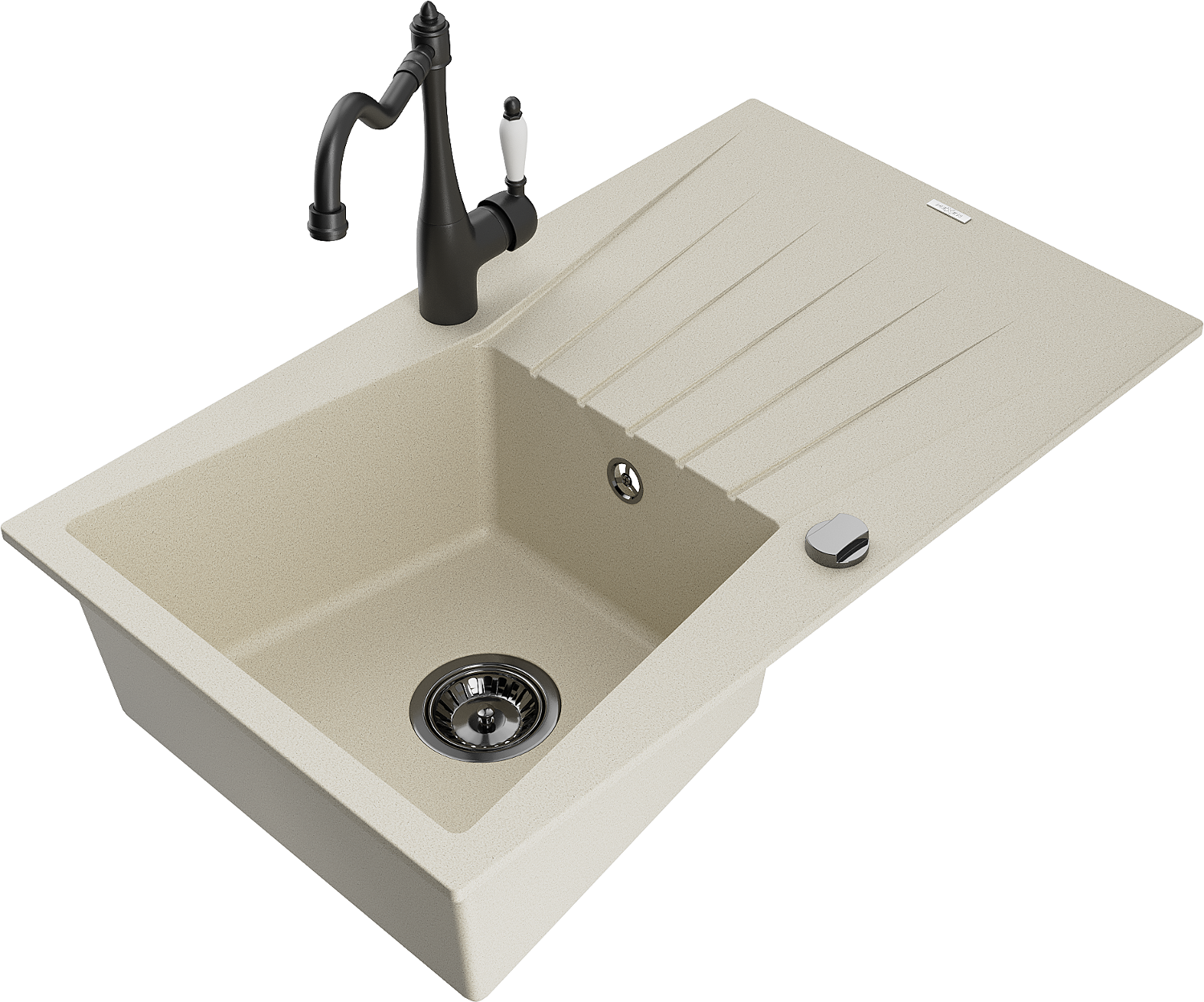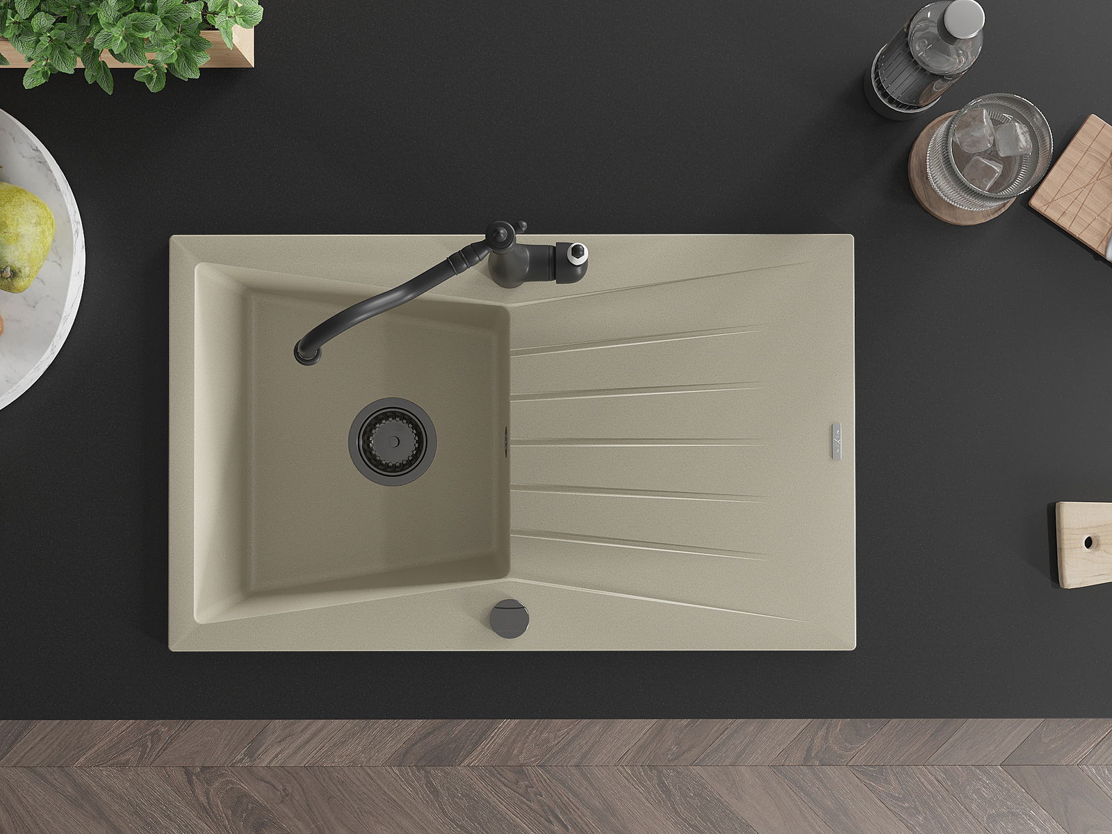 The sink is made of high quality granite. It is an elegant and, above all, practical complement to every kitchen, regardless of its style. High quality and granite durability ensure many years of use.