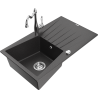 Mexen Cesar 1-bowl granite sink with drainer and Carla kitchen tap, grey - 6514-71-670700-00