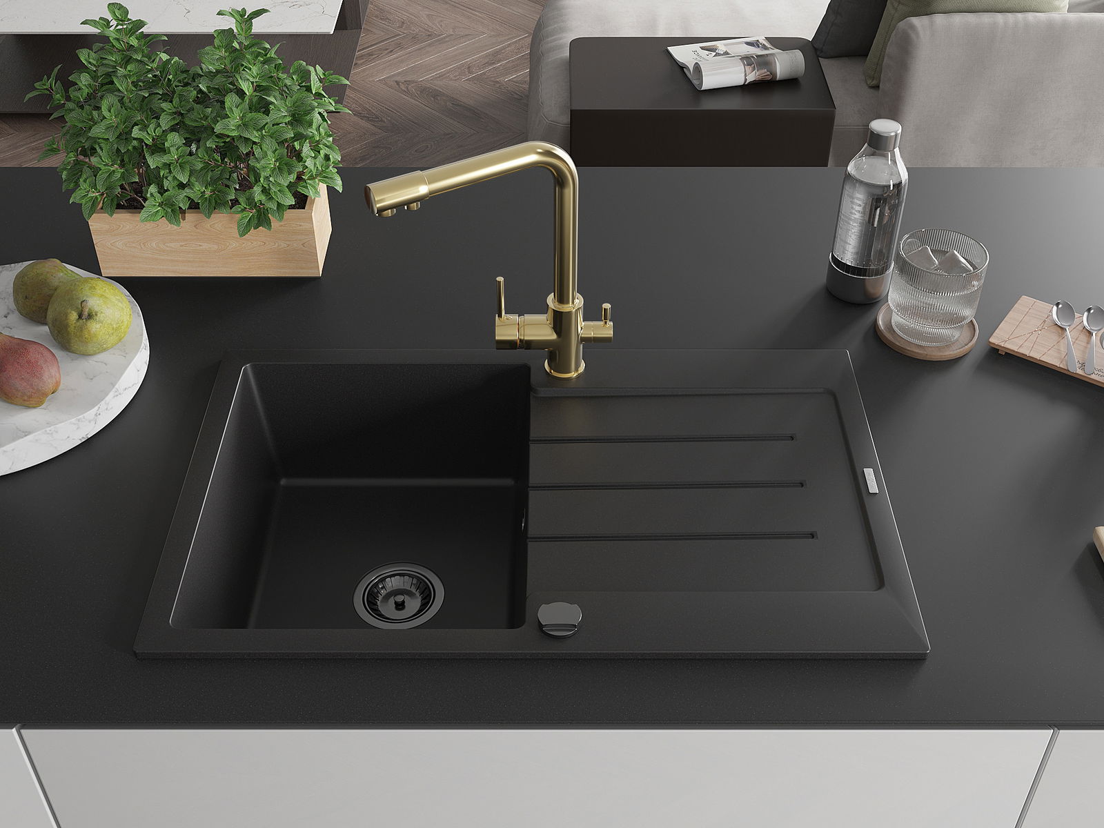 The sink is made of high quality granite. It is an elegant and, above all, practical complement to every kitchen, regardless of its style. High quality and granite durability ensure many years of use.