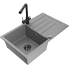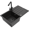 Mexen Bruno granite sink, 1-bowl with drainer and Duero kitchen tap, black - 6513-77-671600-70-B