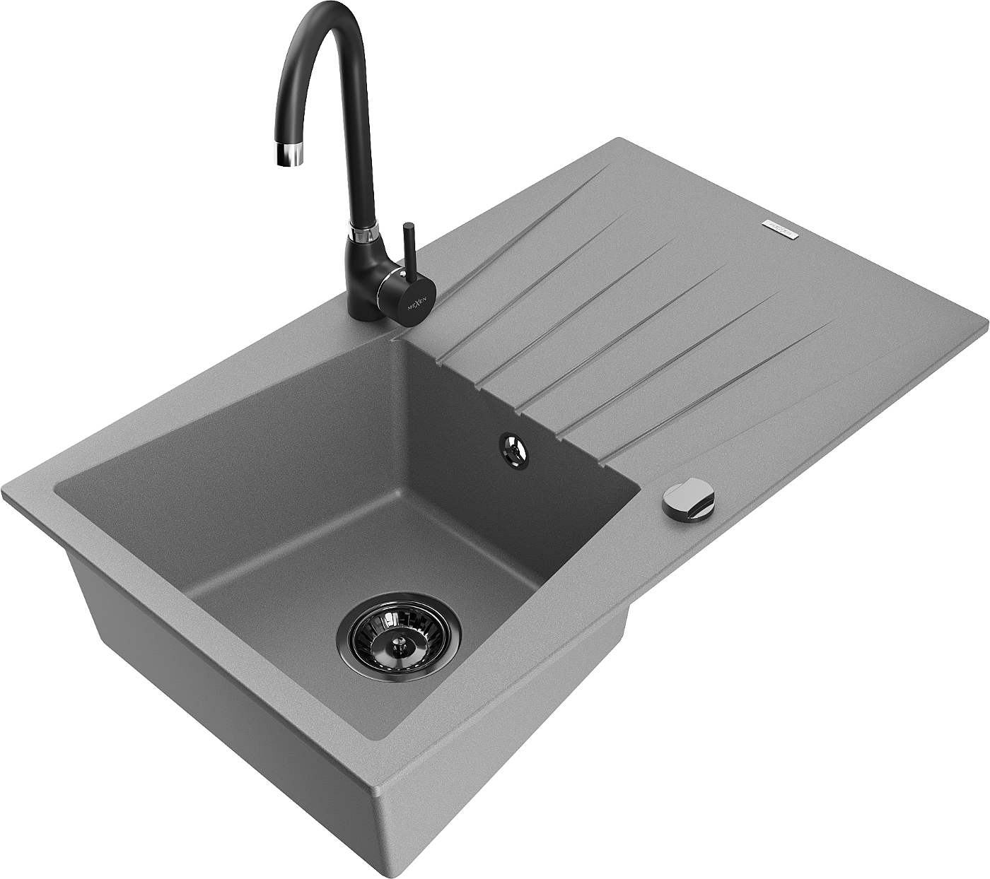 Mexen Cesar 1-bowl granite sink with drainer and Telma kitchen tap, grey - 6514-71-670200-70-B