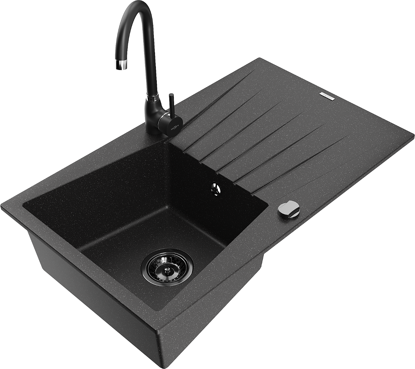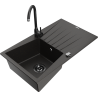 Mexen Cesar granite sink 1-bowl with drainer and Telma kitchen tap, black/silver - 6514-73-670200-70-B