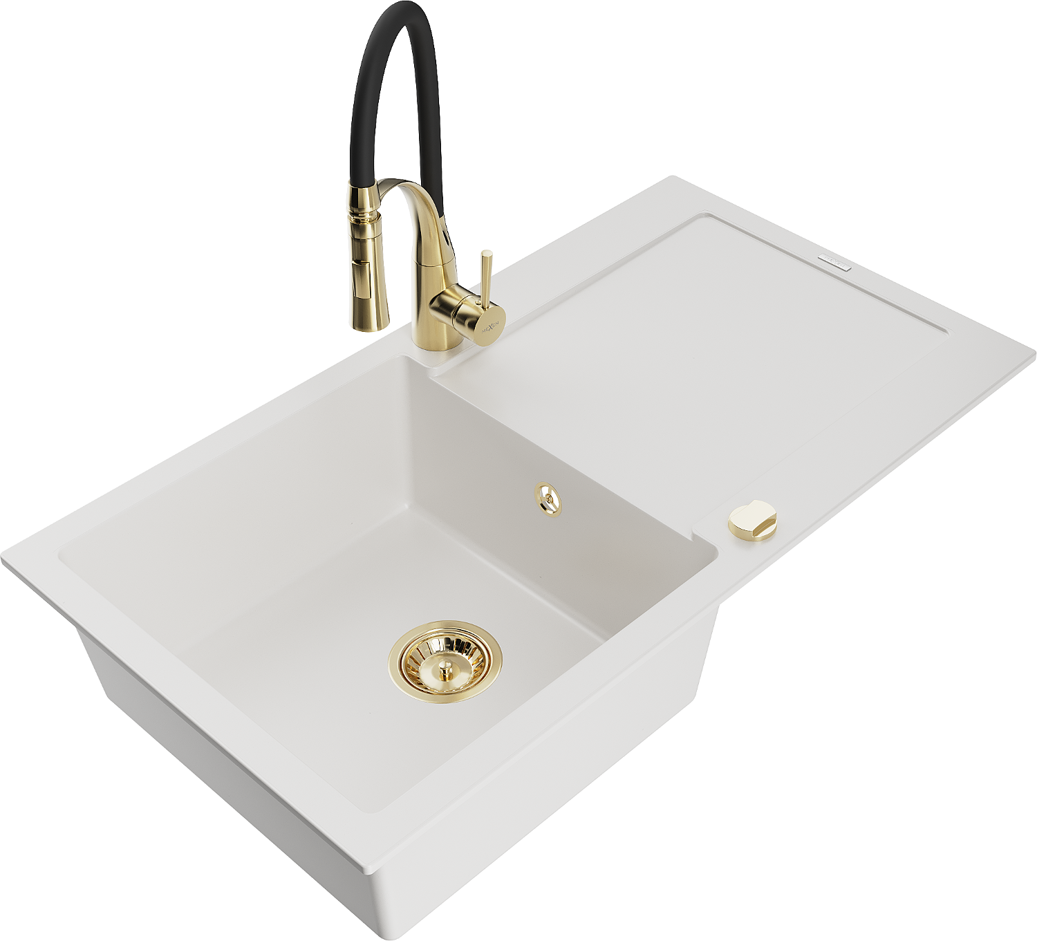 Mexen Leo 1-bowl granite sink with drainer and Aster kitchen tap, white - 6501-20-73450-57-G