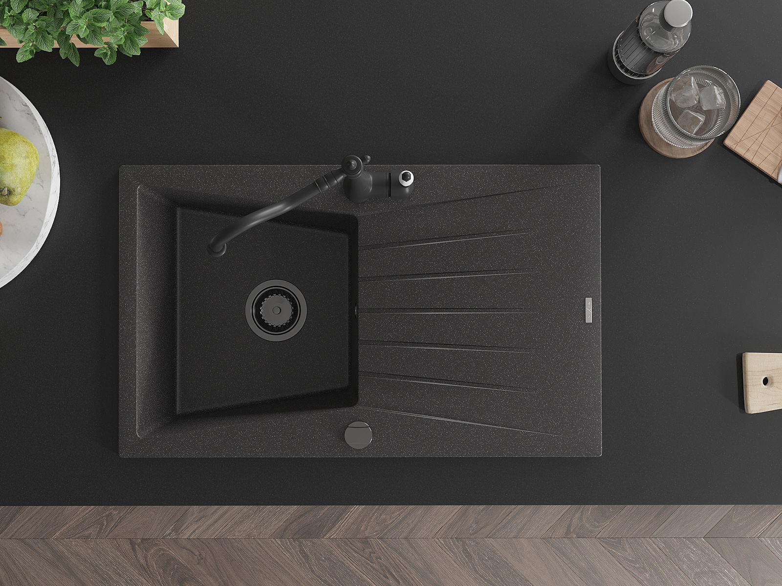 The sink is made of high quality granite. It is an elegant and, above all, practical complement to every kitchen, regardless of its style. High quality and granite durability ensure many years of use.